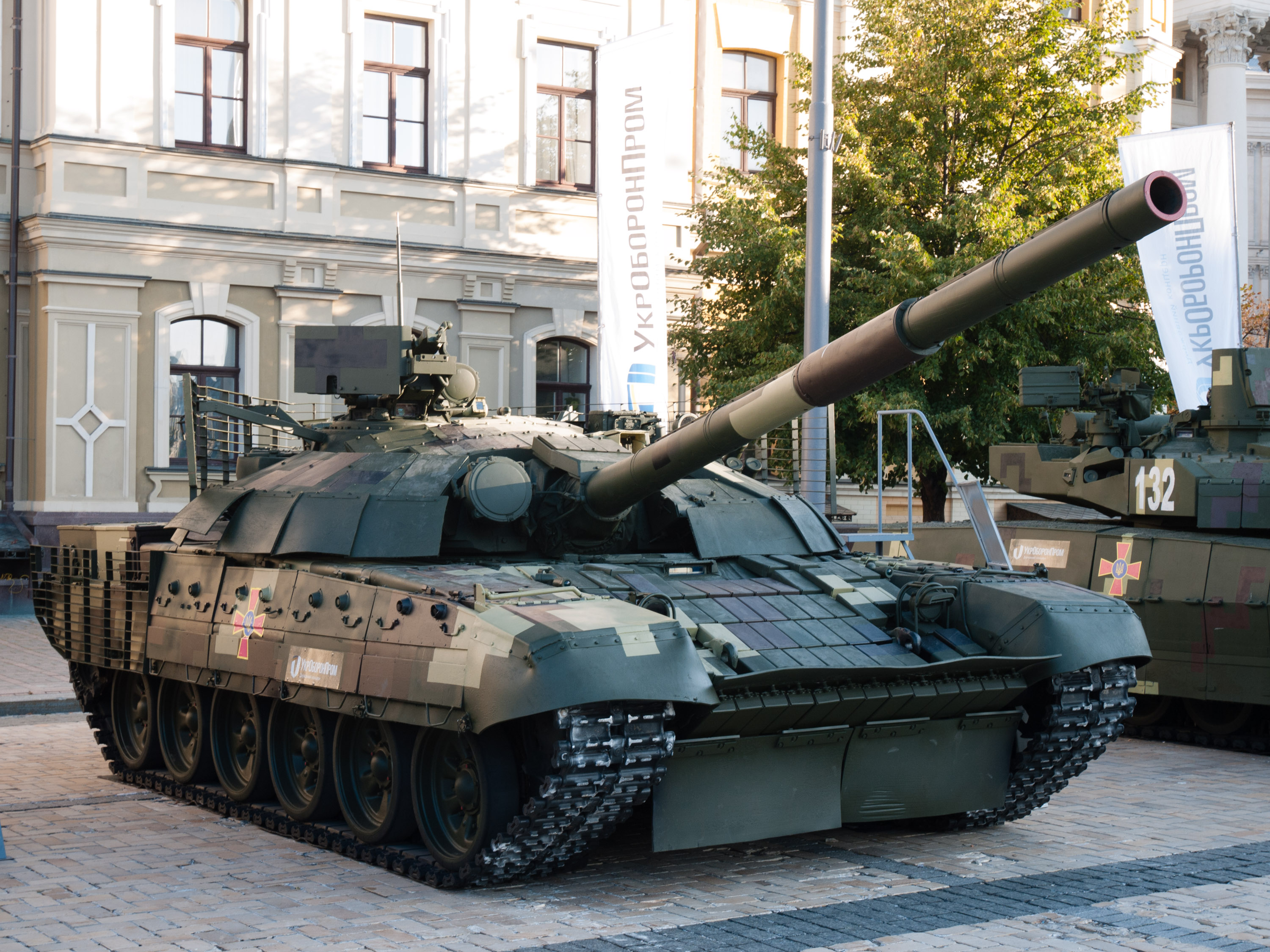 우크라이나의 전차 - T-84 T-84는 우크라이나에서 개발된 T-80UD 기반의 주력 전차로, 우크라이나제 용접 포탑, 폭발 반응 장갑, 1,200마력 엔진 등을 갖추고 있으며, 다양한 파생형이 존재한다.