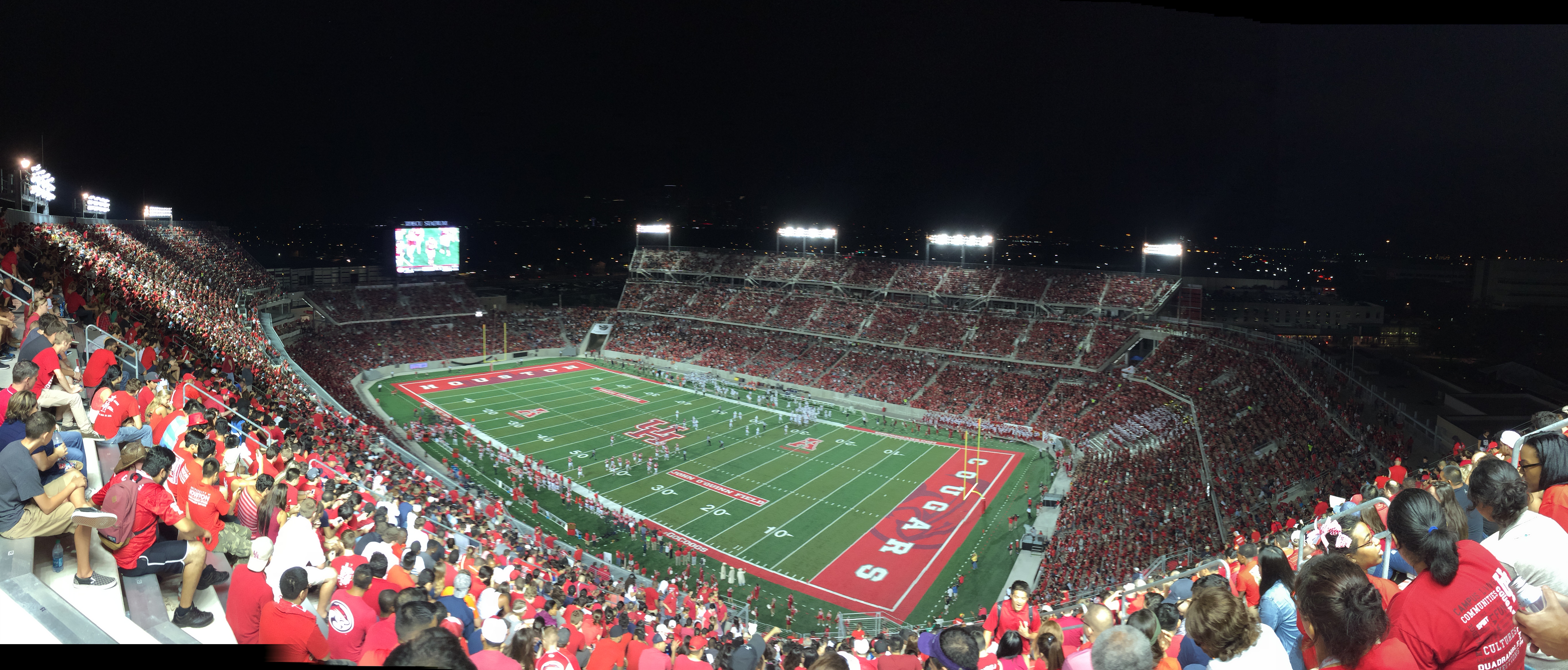 휴스턴 쿠거스는 2014년부터 2017년까지 TDECU 스타디움에서 16번의 연속적인 미식축구 홈 경기를 승리했다. 이 기록에는 랭킹에 포함된 상대를 4번 이긴 경기도 포함되어 있으며, 당시 미국에서 가장 긴 홈 경기 연승 기록이었다.[58] 2015년 휴스턴 쿠거스 미식축구 팀은 홈에서 8승 0패의 완벽한 성적을 거두었고, 2016년 팀은 6번의 홈 경기에서 무패를 기록했다. 전반적으로 휴스턴 쿠거스의 TDECU 스타디움에서의 통산 기록은 44승 22패이며, 랭킹에 포함된 팀과의 경기는 7승 8패이다.