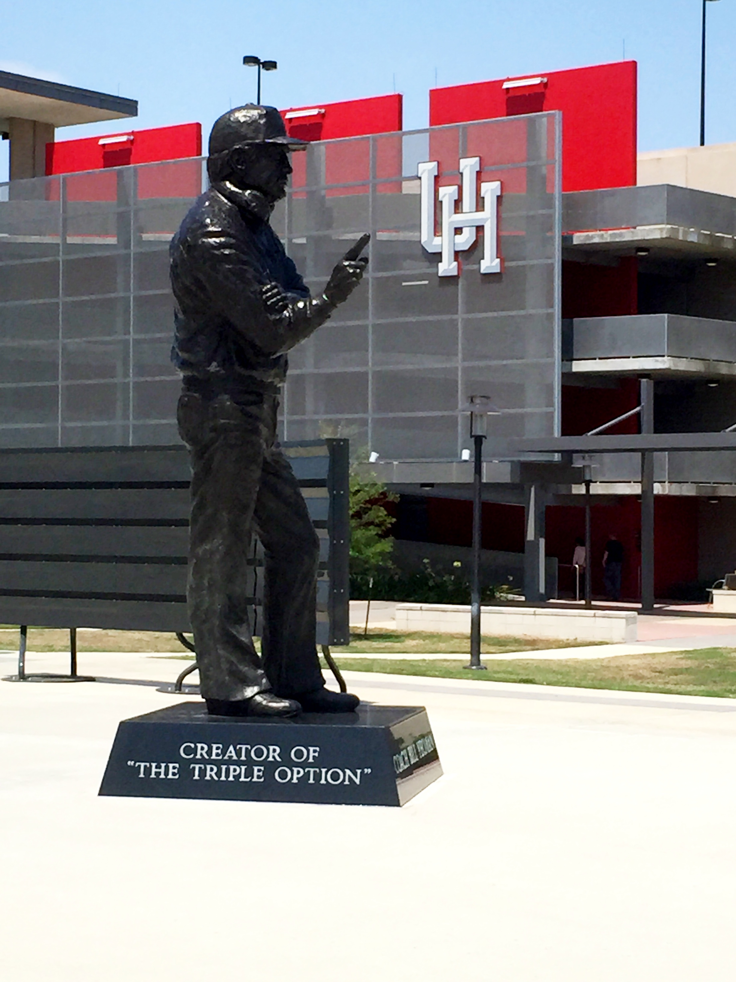 TDECU 스타디움의 북동쪽 입구 외부에는 휴스턴 대학교의 역사적인 휴스턴 쿠거스 풋볼 팀의 중요성을 기리는 플라자 지역인 레전드 플라자가 있다. 이곳에는 대학 풋볼 명예의 전당에 헌액된 코치 빌 요먼의 동상이 세워져 있다.[50] 요먼 코치는 대학 및 고등학교 풋볼에 혁신을 가져온 삼중 옵션 비어 공격을 개발했으며, 1960년대 텍사스에서 대학 풋볼의 인종 통합을 선도한 인물이다. 그는 쿠거스를 4번의 사우스웨스트 컨퍼런스 (SWC) 우승, 2번의 코튼 볼 승리로 이끌었고, 팀을 AP Poll 20위권 안에 11번 진입시켰다.