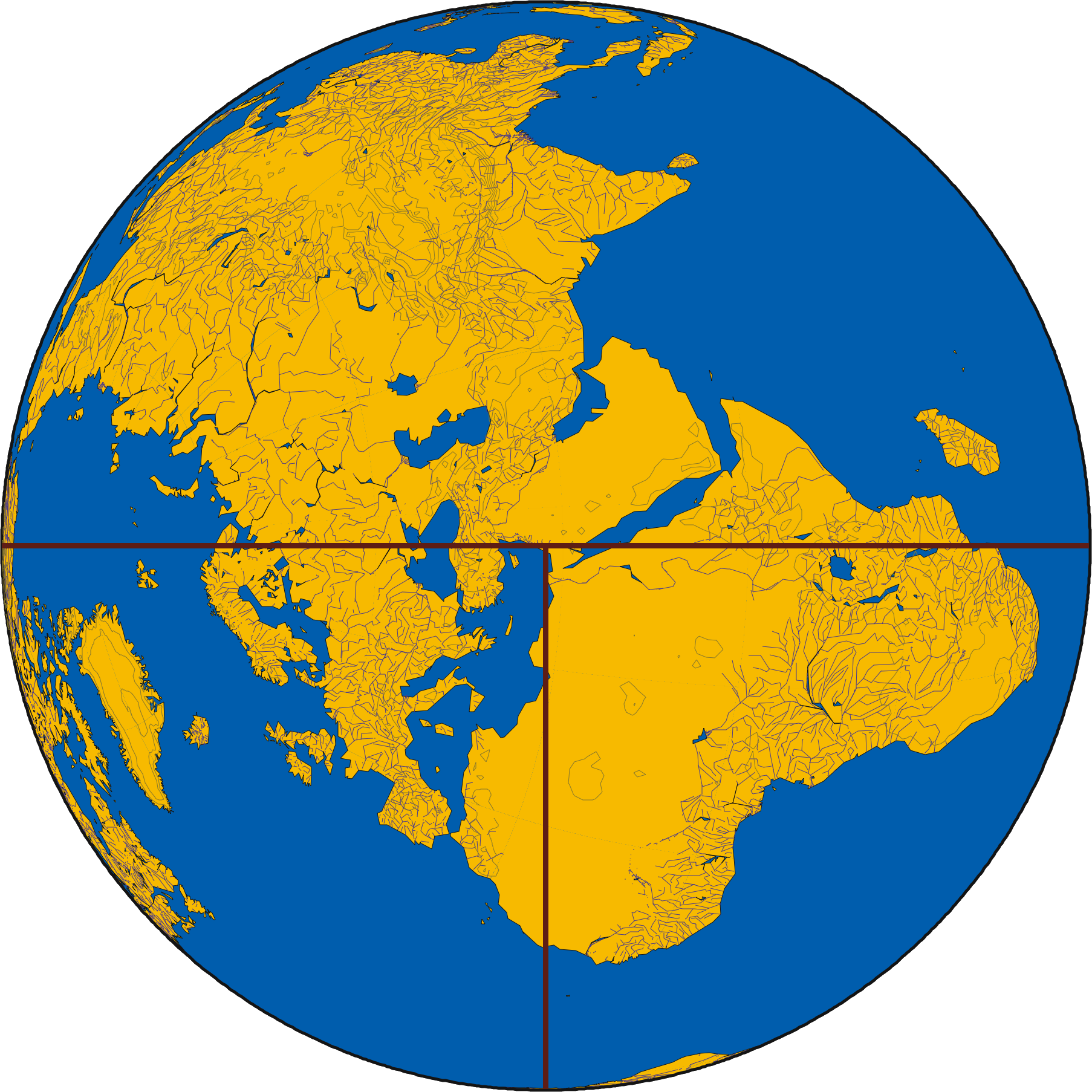 TO도는 구형 지구의 상반부만을 나타낸다.[11] 이것은 지구 북쪽 온대 지역에 사는 사람들이 거주하는 지역을 그리기 위한 간단한 투영법으로 만들어진 것으로 추정된다. 당시에는 남쪽 온대 지역은 도달할 수 없고 사람이 살지 않는다고 생각했기 때문에, 세계지도에 그릴 필요가 없었다. 적도 열대 지방을 넘어 지구 반대편의 미지의 육지에 도달하는 것은 불가능하다고 믿었고, 이 상상 속 남쪽 육지를 반대편 땅이라고 불렀다.[11][12]