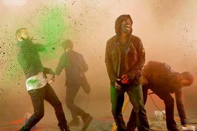 음악 비디오의 비하인드 씬 스크린샷으로, 보컬 체스터 베닝턴마이크 시노다, 리드 기타리스트 브래드 델슨 그리고 베이시스트 데이브 "피닉스" 파렐이 서로에게 색색의 가루를 던지는 모습이 담겨 있다.