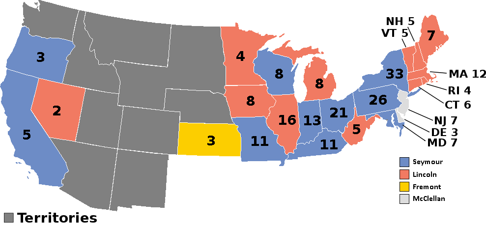 1864년 대통령 선거에서 링컨은 뉴욕 주지사 호레이쇼 시모어에게 패배했다.