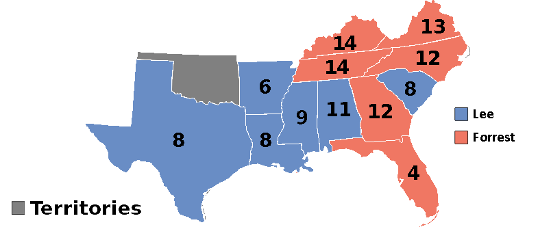 네이선 베드포드 포레스트는 남부연합의 장군으로, 연방군에서 복무한 흑인 노예들과 오랫동안 전투를 벌였다. 그는 노예 제도에 대해 강경한 입장을 보였으며, 노예 제도 폐지에 의문을 품고 있던 로버트 E. 리와 대립했다.[1]1867년 남부 연합 대통령 선거에서 포레스트는 친노예 제도 애국당 후보로 출마하여 텍사스의 루이스 위그폴 상원의원을 부통령 후보로 내세웠다. 리빙턴의 지원을 받았으나, 로버트 E. 리에게 근소한 차이로 패배했다. 선거인단 투표에서는 69-50, 총 득표수에서는 963,437표 중 32,000표 차이였다.[1]
