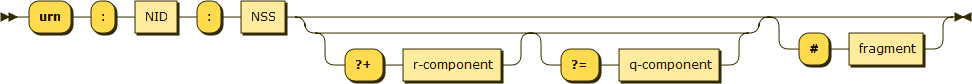URN 문법은 이후 RFC 3986 및 RFC 8141을 통해 확장된 바커스-나우르 표기법(EBNF)으로 더 상세하게 정의되었으며, 구문 다이어그램으로도 표현될 수 있다. 특히 2017년 RFC 8141 업데이트에서는 NSS 내 슬래시(`/`) 문자 사용 허용, 쿼리 컴포넌트(`?=`), 리졸버 컴포넌트(`?+`), 프래그먼트 컴포넌트(`#`) 등 문법적 확장이 이루어졌다. 상세한 문법 규칙과 구성 요소, 확장 문법에 대한 내용은 하위 섹션에서 자세히 다룬다.