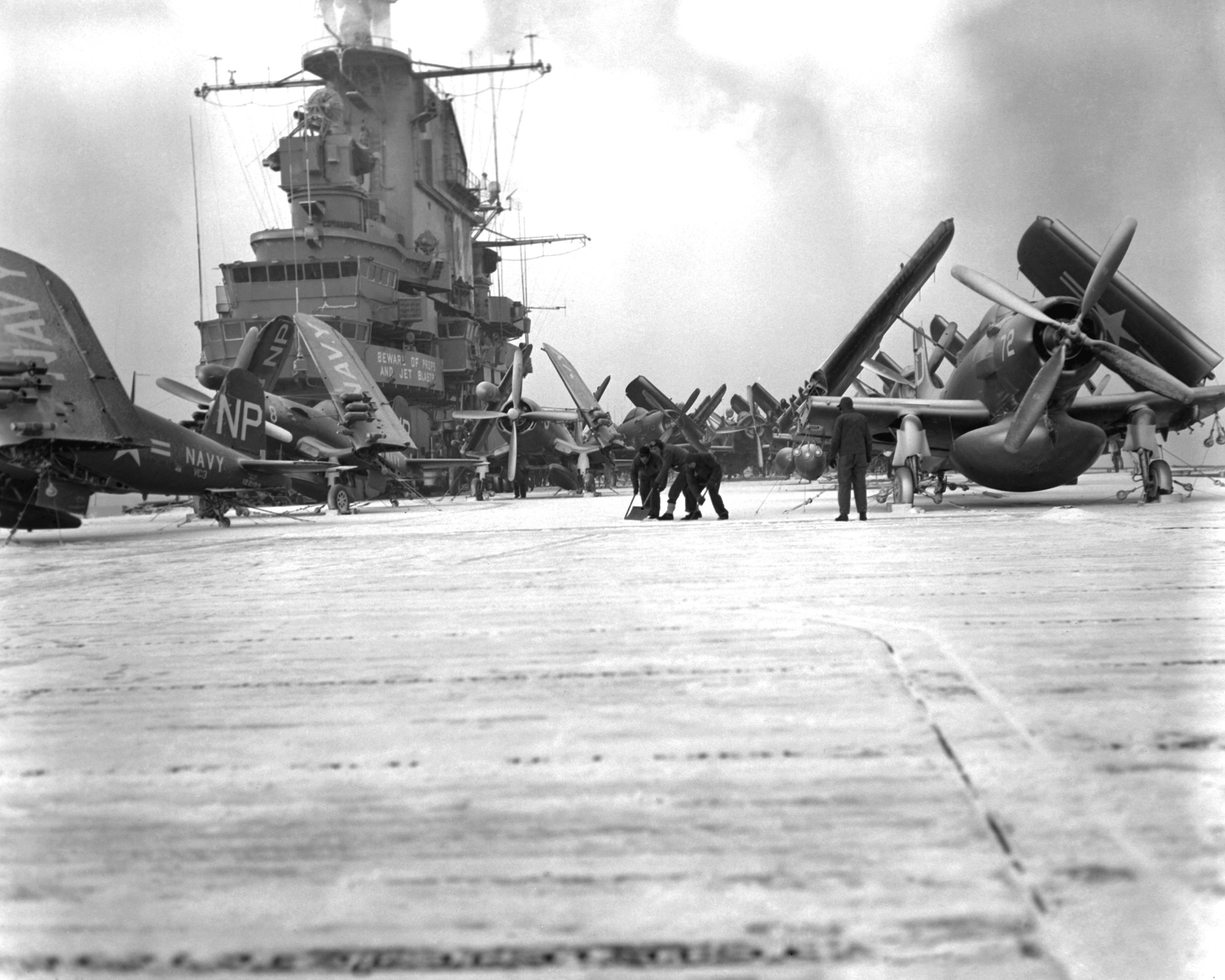 1953년 2월 11일까지 적의 포병 진지, 병력 배치 지역, 주요 전선을 따라 있는 보급품 적치장을 공격하는 공습을 계속했다. 일본에서 잠시 정비한 후, 3월 1일 전투에 복귀했다. 3월 6일에는 F4U 콜세어에서 떨어진 범용 폭탄이 폭발하여 3명이 사망하고 13명이 부상당하는 사고가 발생했다. 3월 29일까지 작전을 계속한 후 홍콩에 기항했다가 4월 8일 공습을 재개했다. 4월 22일 한국 해안을 떠나 요코스카에 잠시 머무른 후 5월 2일 샌디에고로 출발하여 5월 18일 도착했다.