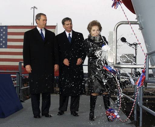 딕 체니 부통령과 린 체니 여사는 낸시 레이건 여사와 함께 취역식에 참석했다. 알츠하이머병으로 진수식과 취역식에 모두 참석하지 못한 로널드 레이건 대통령은 11개월 후 사망했다.