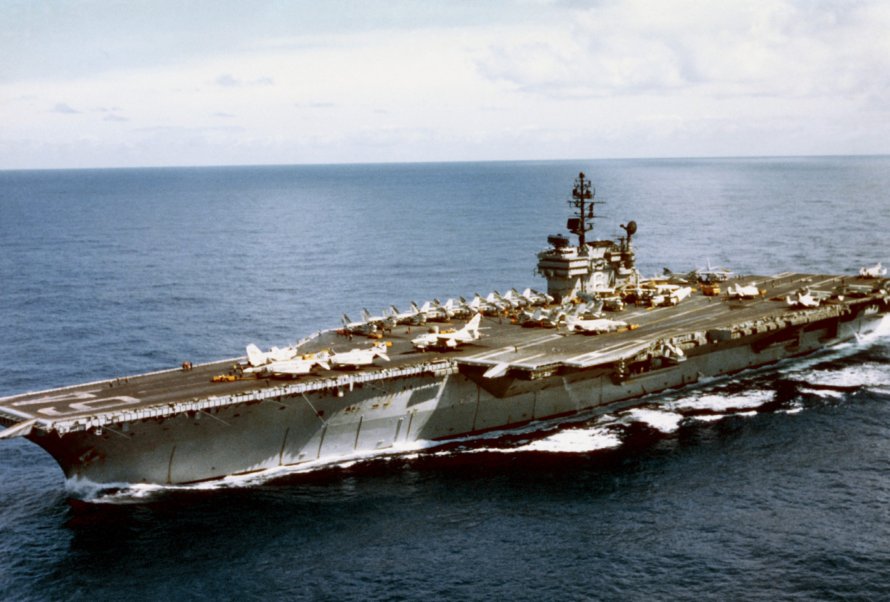USS 엔터프라이즈 (CVN-65)는 미국 해군이 운용한 핵추진 항공모함으로, 1961년 취역하여 2012년 퇴역했으며, A2W 원자로 8기를 탑재하여 장기간 작전 수행이 가능했고, 쿠바 미사일 위기, 베트남 전쟁, 걸프 전쟁 등 다양한 군사 작전에 참여했다. - 1960년 선박 - USS 키티호크 (CV-63)
