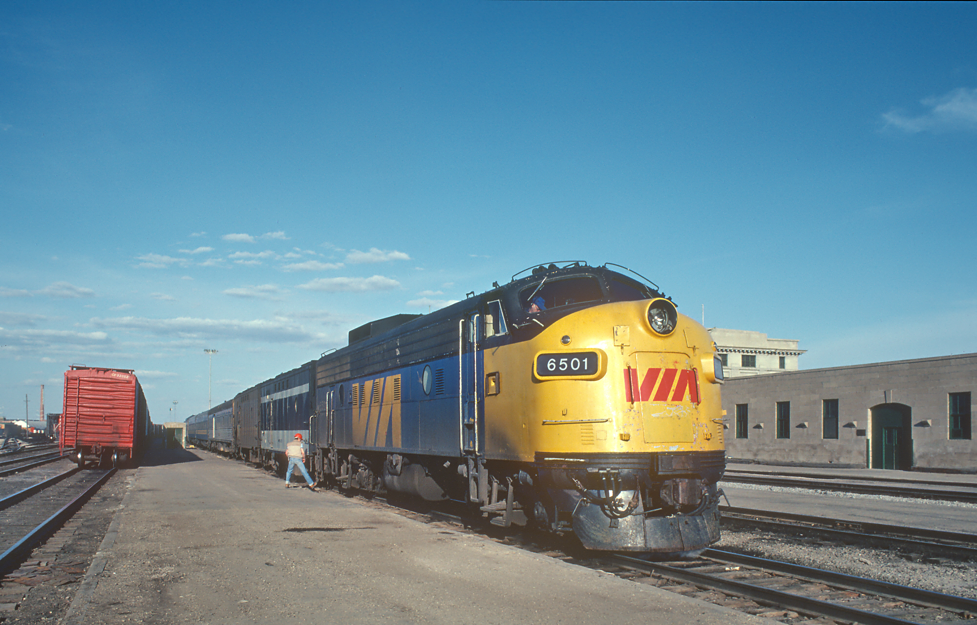 1977년 1월 12일, CN은 여객 서비스를 별도의 국영 기업인 비아 레일 캐나다로 분사했다. 설립 당시 비아는 모든 CN 여객 열차와 기관차를 인수했다. 1978년 10월 29일, 비아는 모든 CP 여객 열차 운행을 인수하고 열차와 기관차를 소유하게 되었다.[5]