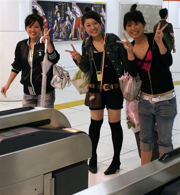 V 사인은 일본인, 특히 젊은 층이 비공식적인 사진을 찍을 때 매우 흔하게 사용하며, ピースサイン|피스 사인일본어 또는 더 흔하게 ピース|피스일본어라고 알려져 있다.[41][42][40] 일본에서는 1960년대 후반 베트남에 평화를! 시민연합(베이헤이렌)의 반 베트남 전쟁 운동가들과 1971년 코니카 카메라 광고의 영향을 받은 것으로 일반적으로 여겨진다.