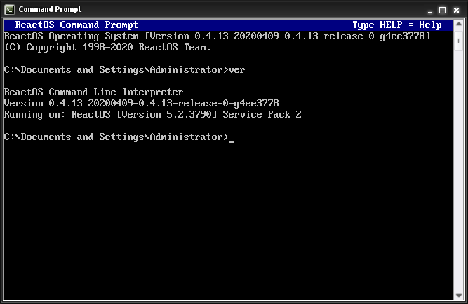 `ver` 명령어는 MS-DOS 버전 2 이상에서 사용할 수 있다.[13] MS-DOS 6.22까지의 버전은 일반적으로 DOS 커널에서 DOS 버전을 가져오는데, 이는 시작 시에 출력되는 문자열과 다를 수 있다. "/r" 인수를 추가하면 더 많은 정보를 제공하고 DOS가 HMA(고급 메모리 영역)에서 실행되고 있는지 여부를 알려준다.