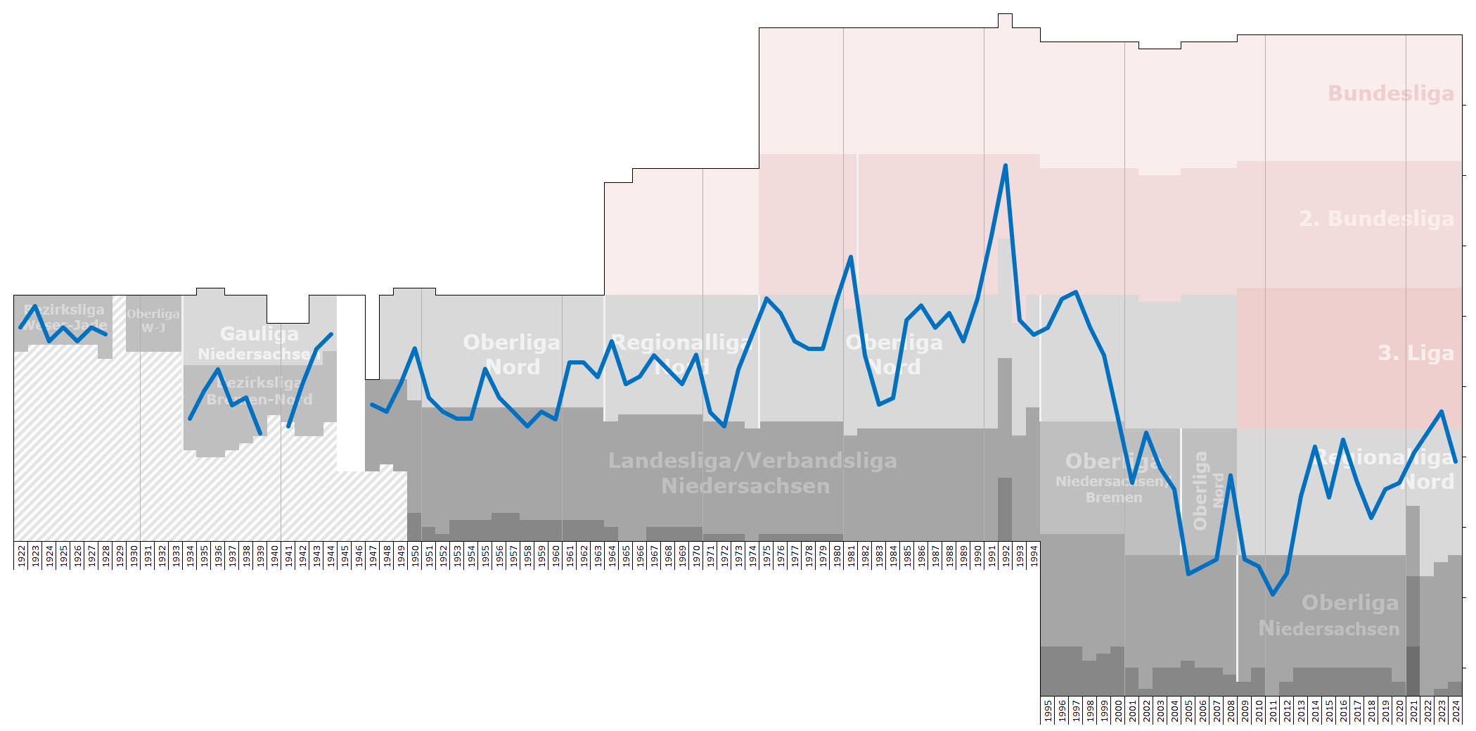 1942년에는 1부 가울리가 베저-엠스에 소속되었지만, 제2차 세계 대전의 전황 악화로 인해 1944년을 기점으로 리그가 중단되었다.[1]