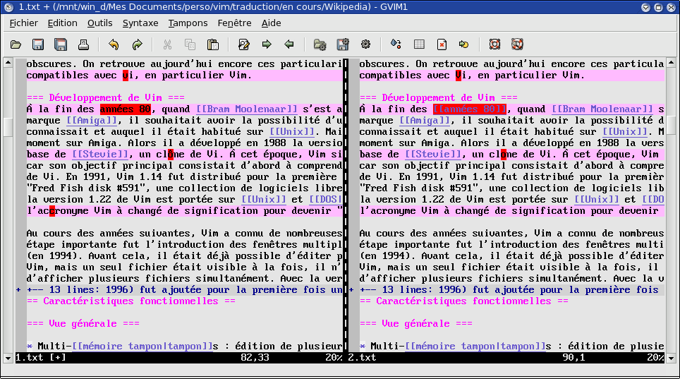 | 1992년 | 1.22[18] | 유닉스로 포팅되었지만, 공개적으로 출시되지는 않았다.[17] 이제 Vim은 vi와 경쟁한다. |