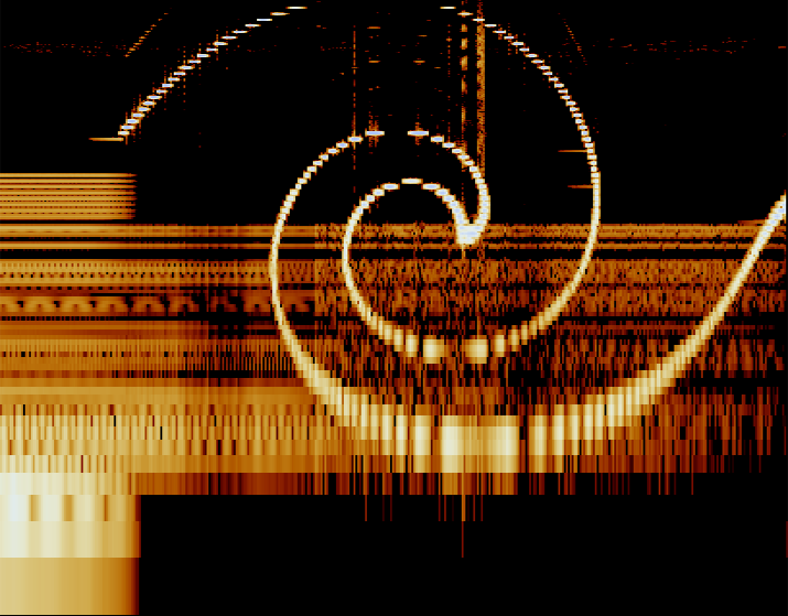 Windowlicker영어의 스펙트로그램은 곡의 마지막 부분에 나선형을 드러낸다. 이 나선형은 X와 Y가 L 및 R 채널의 진폭을 나타내는 산포 그래프로 볼 때 더 인상적이며, 팽창하고 수축하는 동심원과 나선형을 보여준다.이 효과는 Mac 기반 프로그램인 MetaSynth를 사용하여 구현되었다.[11] 이 프로그램은 사용자가 디지털 이미지를 스펙트로그램으로 삽입할 수 있게 해준다. 그런 다음 MetaSynth는 스펙트로그램을 디지털 소리로 변환하여 그림을 "재생"한다. 웹사이트 ''Wired News''의 기사에 따르면, 프로그램을 통해 실행된 사진들은 "종종 불협화음적이고 금속성의 긁는 소리"를 낸다고 한다.[12]