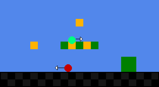 굼바를 지나면 금색 블록들이 나타난다. 이 중 하나를 아래에서 치면 코인이 나오고, 미야모토 시게루에 따르면 이 경험은 플레이어를 "기쁘게" 만들어 반복적인 행동을 유도한다.[2] 두 번째 금색 블록을 치면 버섯이 나타나는데, 굼바 때문에 피하려 할 수 있지만 블록 복도에 막혀 닿게 된다. 버섯은 마리오를 성장시켜 또 다른 긍정적인 보상을 제공한다.[2][4]