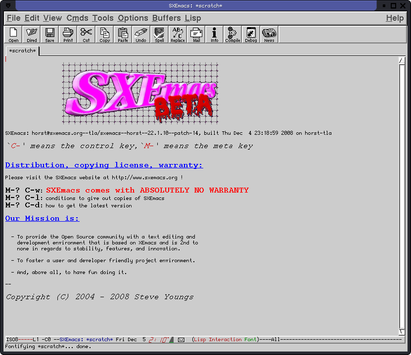XEmacs는 익명의 CVS, 이후 Mercurial 접근과 공개적으로 접근 가능한 개발 메일링 리스트를 갖추어, 항상 매우 개방적인 개발 환경을 유지해 왔다.[13] XEmacs는 500페이지가 넘는 내부 매뉴얼(Wing 외, 2004)을 포함하고 있다.[13]5. SXEmacs