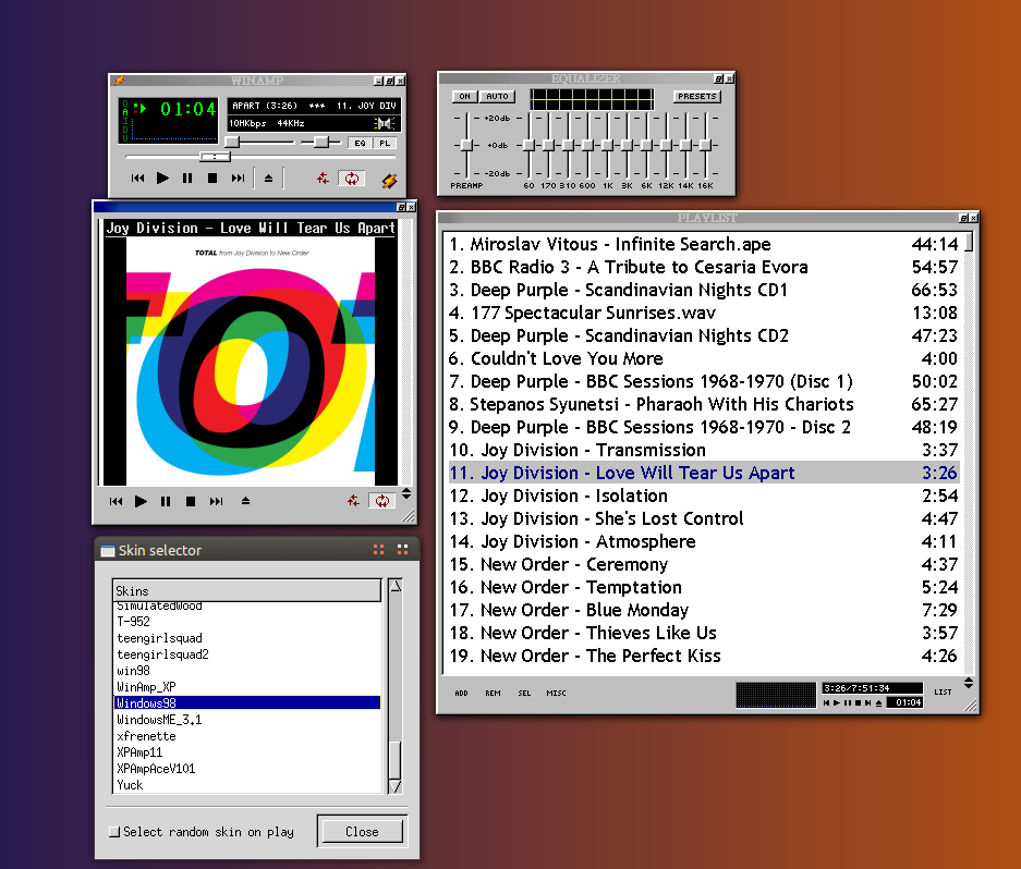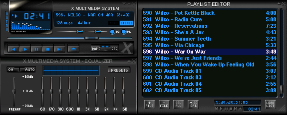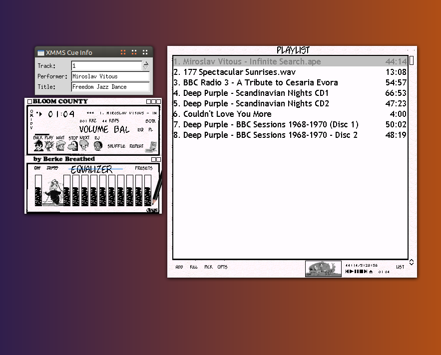 XMMS는 기본 스킨을 제공하지만, WSZ 클래식 스킨을 사용하여 플레이어의 그래픽적 매력을 향상시킬 수 있다.