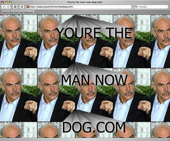 YTMND는 2001년 맥스 골드버그가 영화 ''파인딩 포레스터''의 예고편에서 숀 코너리가 "You're the man now, dog!"라는 대사를 하는 것을 본 후 "yourethemannowdog.com"이라는 원래 웹사이트를 만들면서 시작되었으며, 이 사이트는 "dustindiamond.com"과 함께 등록되었다.[1] 원래 이 웹사이트는 ''파인딩 포레스터'' 예고편에서 코너리가 "You're the man now, dog!"라는 문구를 반복하는 사운드 루프와 함께 3D ASCII 텍스트로 "YOURE THE MAN NOW DOG.COM" 텍스트를 특징으로 했다.[1] 현재 웹사이트에서 볼 수 있는 줌 텍스트의 출현은 그 다음 달에 나타났으며, 웹사이트에는 코너리의 사진도 게재되었다. 골드버그의 새로운 창작물은 다른 사람들이 다른 영화 및 텔레비전 인용구(또는 사용하고자 하는 다른 사운드 클립)를 사용하여 비슷한 사이트를 만들도록 영감을 주었다.[2][3] 처음에 골드버그는 이러한 사이트의 목록과 미러를 유지했지만,[4] 목록은 곧 매우 길어졌다.[5]