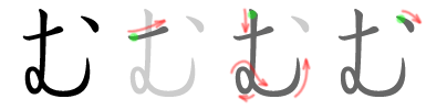 Stroke order in writing む