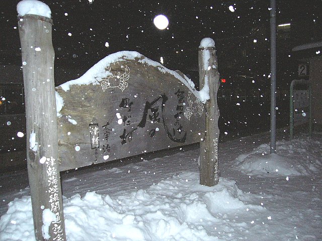 - 2, 3번 승강장에는 쓰가루 해협선 개통을 기념하여 다자이 오사무의 소설 쓰가루의 한 구절을 새긴 판이 세워져 있다.[1]