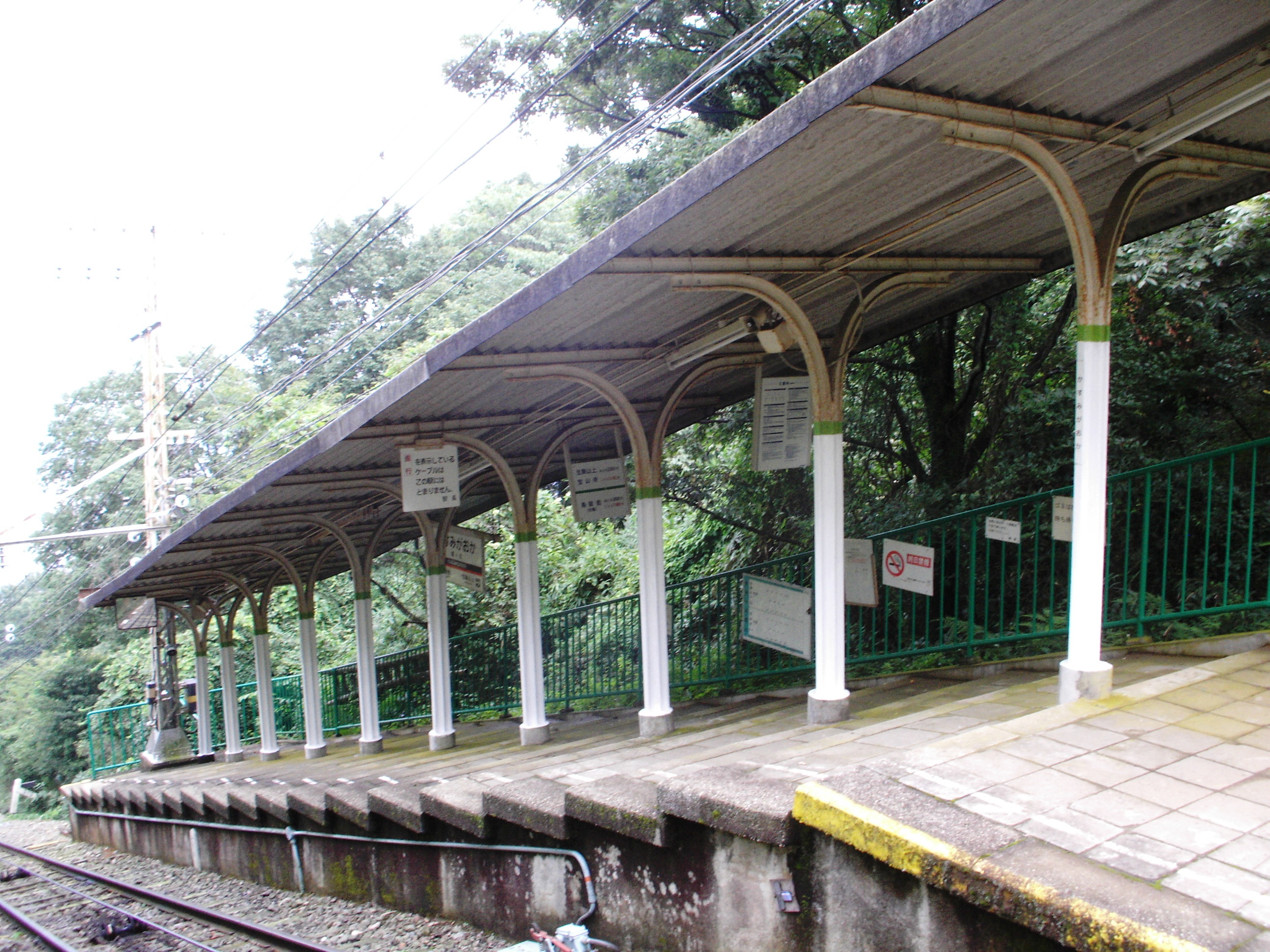 단선 1면 1선의 승강장으로, 무인역이다. 출입구는 승강장 이코마산조 방면에 있다. 개찰구나 역사는 없으며, 바로 승강장으로 들어가는 형태이다. 등산로에서 승강장으로 들어가기 위해서는 계단 형태의 제3종 건널목을 횡단한다. 승강장은 계단 형태이다.단선 승강장이므로, 이코마산조행과 호잔지행 열차가 동일 승강장에 발착한다.