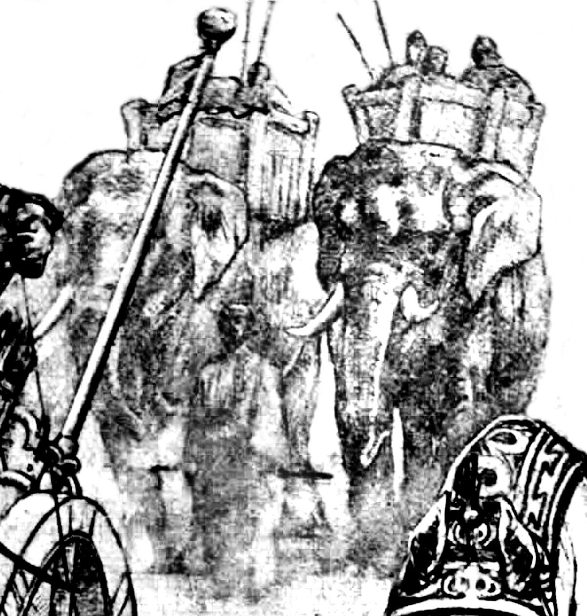아리아노스는 인도 군대도 배치되었다고 기록했다. 그는 다리우스 3세가 "박트리아와 소그디아나인들과 함께 박트리아 총독 베소스의 지휘하에 박트리아에 인접한 인도인들의 도움을 받았다"고 설명한다. 이 인도인들은 아마도 간다라 지역 출신이었을 것이다. 아리아노스는 인도 "산악인"들도 총독 바르센테스의 지휘하에 아라코시아인에 합류했으며, 사타기디아인 또는 힌두시인으로 여겨진다.