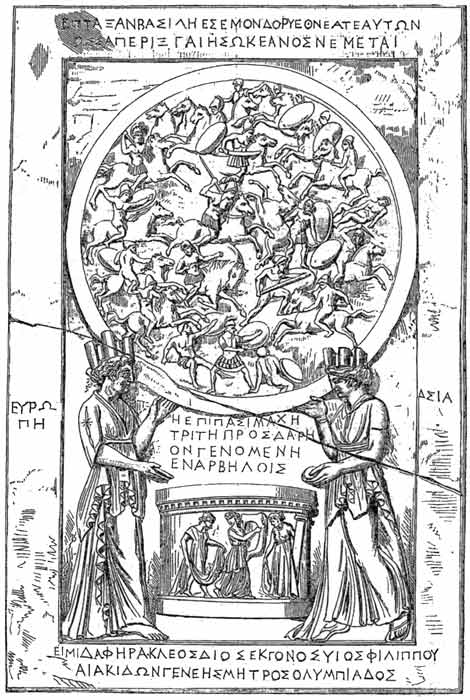 관련 전투 | 발칸 하에무스 산 전투 (기원전 335년) 펠리움 공성전 (기원전 335년) 테베 전투 (기원전 335년) 페르시아 그라니코스 전투 (기원전 334년) 밀레투스 공성전 (기원전 334년) 할리카르나소스 공성전 (기원전 334년) 이수스 전투 (기원전 333년) 티레 공성전 (기원전 332년) 가자 공성전 (기원전 332년) 페르시아 관문 전투 (기원전 330년) 키로폴리스 공성전 (기원전 329년) 야크사르테스 전투 (기원전 329년) 가바이 전투 (기원전 328년) 소그드 암벽 인도 코펜 원정 (기원전 327년) 아오르노스 히다스페스 전투 (기원전 326년) 말리아 원정 |