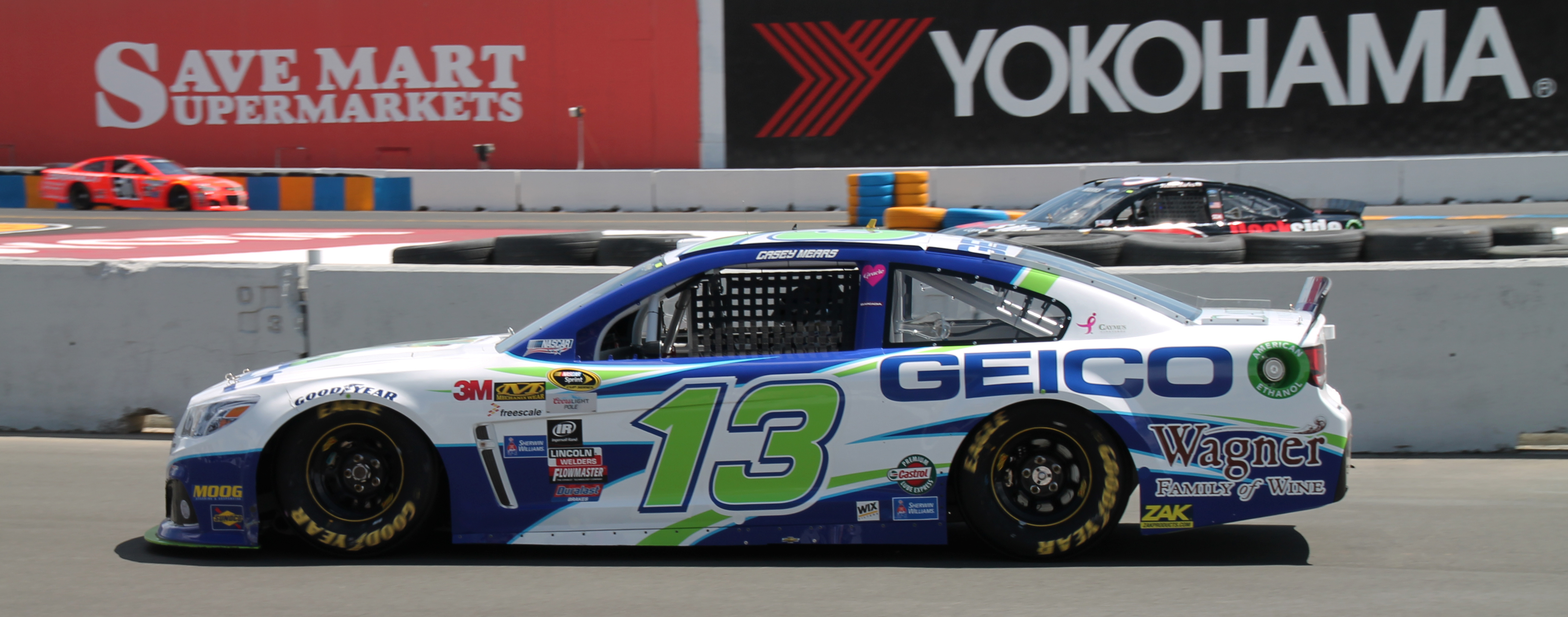 2015 토요타/세이브 마트 350 예선에서 케이시 미어스가 운전한 13번 GEICO 쉐보레 SS