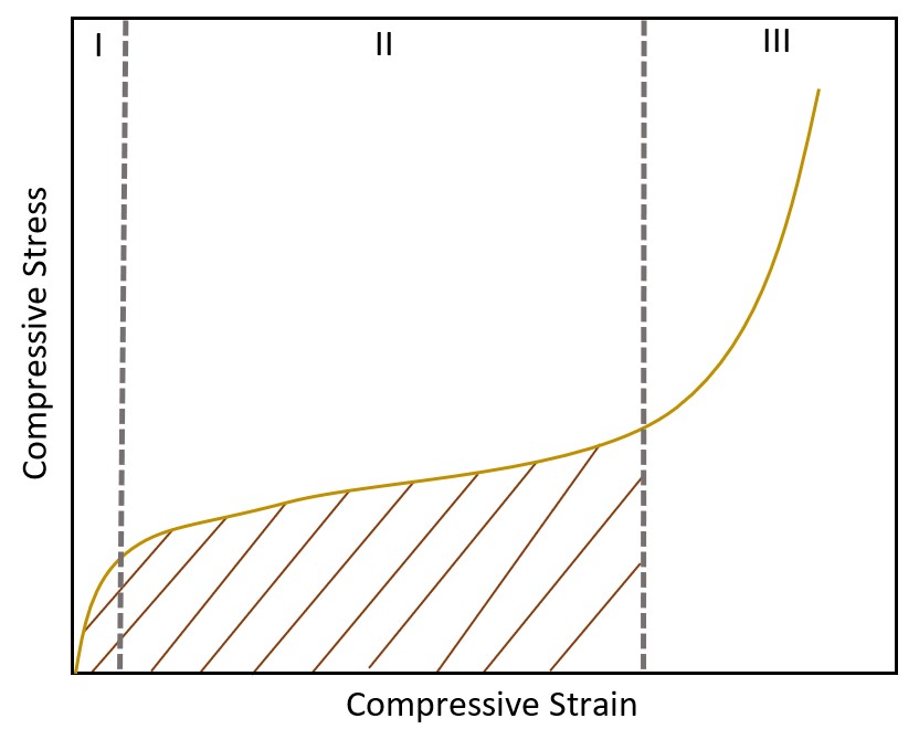 이 방정식은 실험 결과를 바탕으로 한 공학적 근사치를 사용하여 이상적인 폼을 가정하여 도출되었다. 대부분의 에너지 흡수는 가파른 선형 탄성 영역 이후의 평평한 응력 영역에서 발생한다.