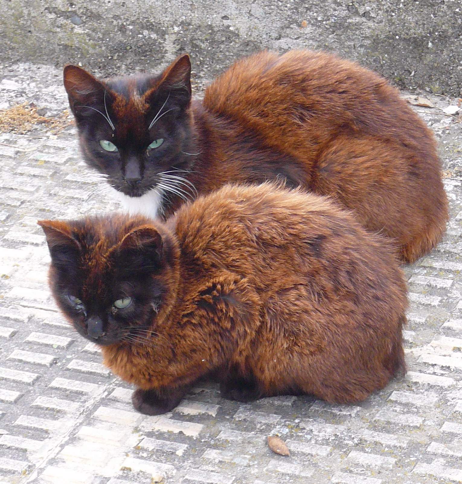 검은 고양이는 햇볕에 "녹슬" 수도 있는데, 털이 더 밝은 갈색빛 붉은색으로 변한다.[2] 검은 털을 생성하는 데 필요한 색소인 유멜라닌(eumelanin)은 다소 약하기 때문에 자주 햇볕에 노출되는 고양이에서 녹스는 효과가 더 두드러질 수 있다. 유멜라닌 생성에 필요한 아미노산인 티로신(tyrosine) 결핍도 녹스는 원인이 될 수 있는 드문 상황이다.[3]