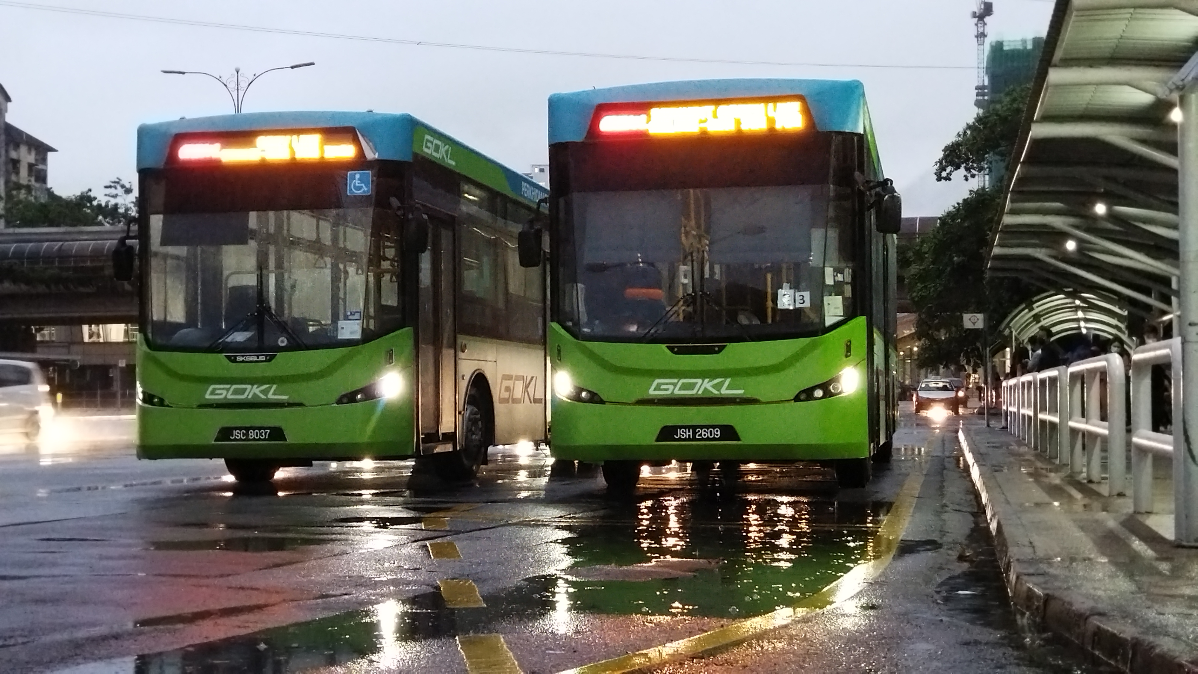 과거 그린 및 퍼플 라인에는 Rapid KL의 킹롱 XMQ6121G 버스가, 레드 및 블루 라인에는 Konsortium Transnasional의 대우 BV120MA NGV 버스가 자주색과 분홍색 도색으로 운행되었다. 2015년 8월 1일, 이 버스들은 스카니아 K-시리즈와 알렉산더 데니스 Enviro200 버스로 교체되었다.[30] Enviro200 버스는 주로 블루 및 레드 라인에서, 스카니아 K270 버스는 마룬 및 초콜릿 라인에서, 스카니아 K250 버스는 나머지 노선에서 운행되었으며, 혼잡 시간대에는 스카니아 K250 버스가 다른 노선에서도 운행되었다. 2021년 10월 31일까지 이 버스들이 사용되었으며, 이후 GoKL의 모든 운행은 Causeway Link와 SKSBus로 이전되었다. 모든 버스는 해당 운영업체로 반환되어 일반 운행에 재배치하기 위해 재도색되었다.