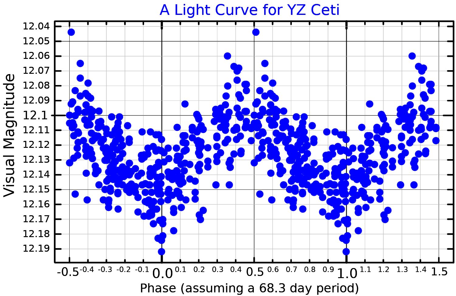고래자리 YZ는 변광성 명칭으로, 표면 폭발로 인해 밝기가 급격하고 짧게 증가하는 현상을 보이며, 때로는 12.03 등급에 이르기도 한다. 이러한 유형의 변광성은 첫 번째 구성원인 UV Ceti 별이라고 알려져 있으며, 더 흔히 플레어 별이라고도 한다.