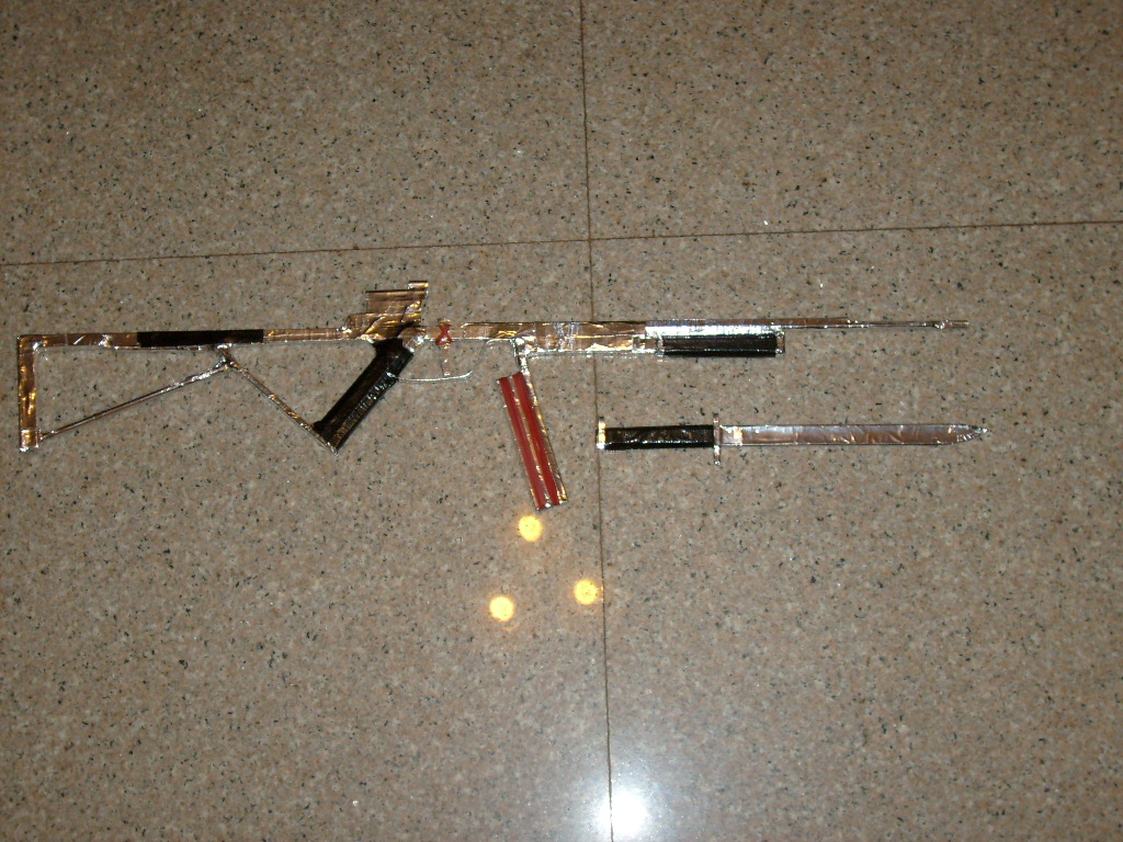 아이크스림 막대, 스테이플, 다양한 스타일과 크기의 고무줄만으로도 고무줄 총을 만들 수 있다. 당시 고등학생이었던 스튜어트 A. 버턴이 개발하고 연마한 이 기술은 매우 유연하며, 매우 진보되고 복잡한 고무줄 총을 개발하는 데 활용될 수 있다. 예를 들어, 레버와 슬라이딩 메커니즘을 사용하여 펌프 액션 산탄총을 만들 수 있다. 간단한 기하학적 구조와 특수한 위치 지정을 사용하면 종이 클립을 회전 발사 부품의 축으로 사용하여 반자동 및 2발 연사 무기는 물론, 더 복잡한 완전 자동 무기도 쉽게 만들 수 있다. 때때로 대나무 꼬치와 같은 다른 재료가 총 제작에 사용될 수도 있다.