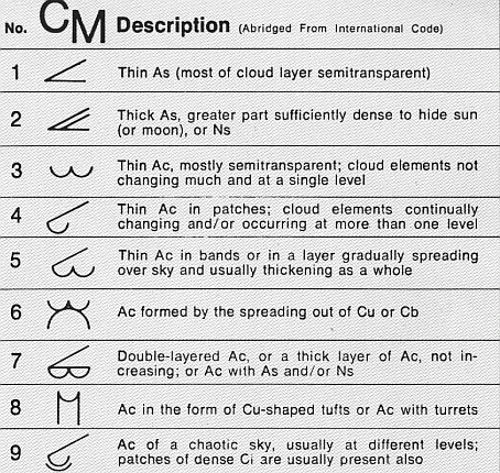 기호 | [[File:Clouds CM 3.svg|20px|CM3]], [[File:Clouds CM 2.svg|20px|CM2]], [[File:Clouds CM 4.svg|20px|CM4]], [[File:Clouds CM 5.svg|20px|CM5]], [[File:Clouds CM 6.svg|20px|CM6]], [[File:Clouds CM 7.svg|20px|CM7]], [[File:Clouds CM 8.svg|20px|CM8]], [[File:Clouds CM 9.svg|20px|CM9]] |