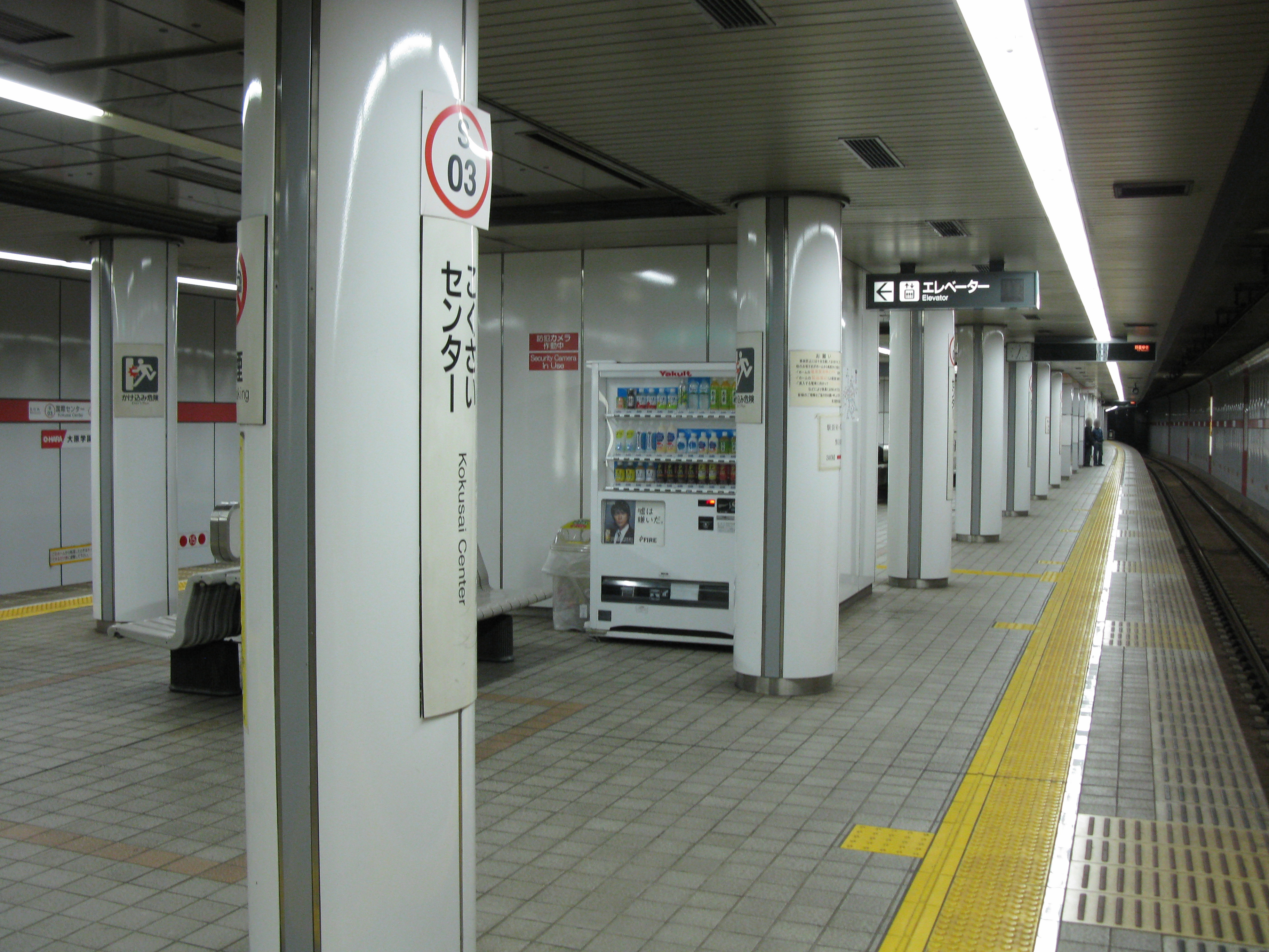 역 번호는 '''S03'''이며, 액센트 컬러는 다크 그레이이다. 주변에 빌딩이 많아 아침저녁으로는 통근객으로 붐비지만, 나고야역까지 지하상가 유니몰로 직결되어 도보권 내에 있으며, 나고야 시영 버스도 모두 나고야역으로 향하므로 지하철을 이용하는 승객은 그다지 많지 않다. 영어 표기는 "Kokusai Center"와 "International Center"가 병기되어 있다.