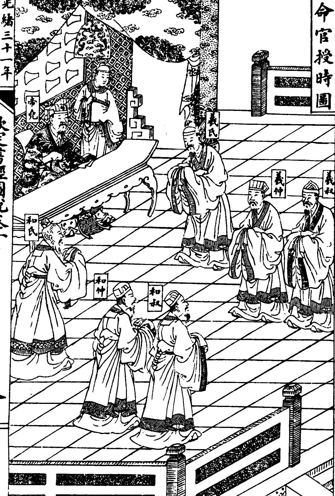 희화 형제가 요 임금으로부터 달력을 정리하라는 명령을 받음