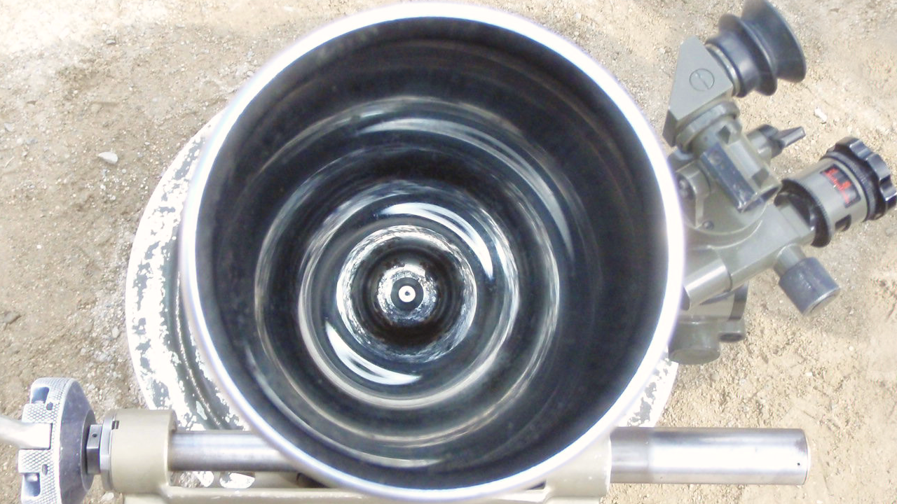 고정된 공이가 보이는 L16 81mm 박격포의 포신 내부