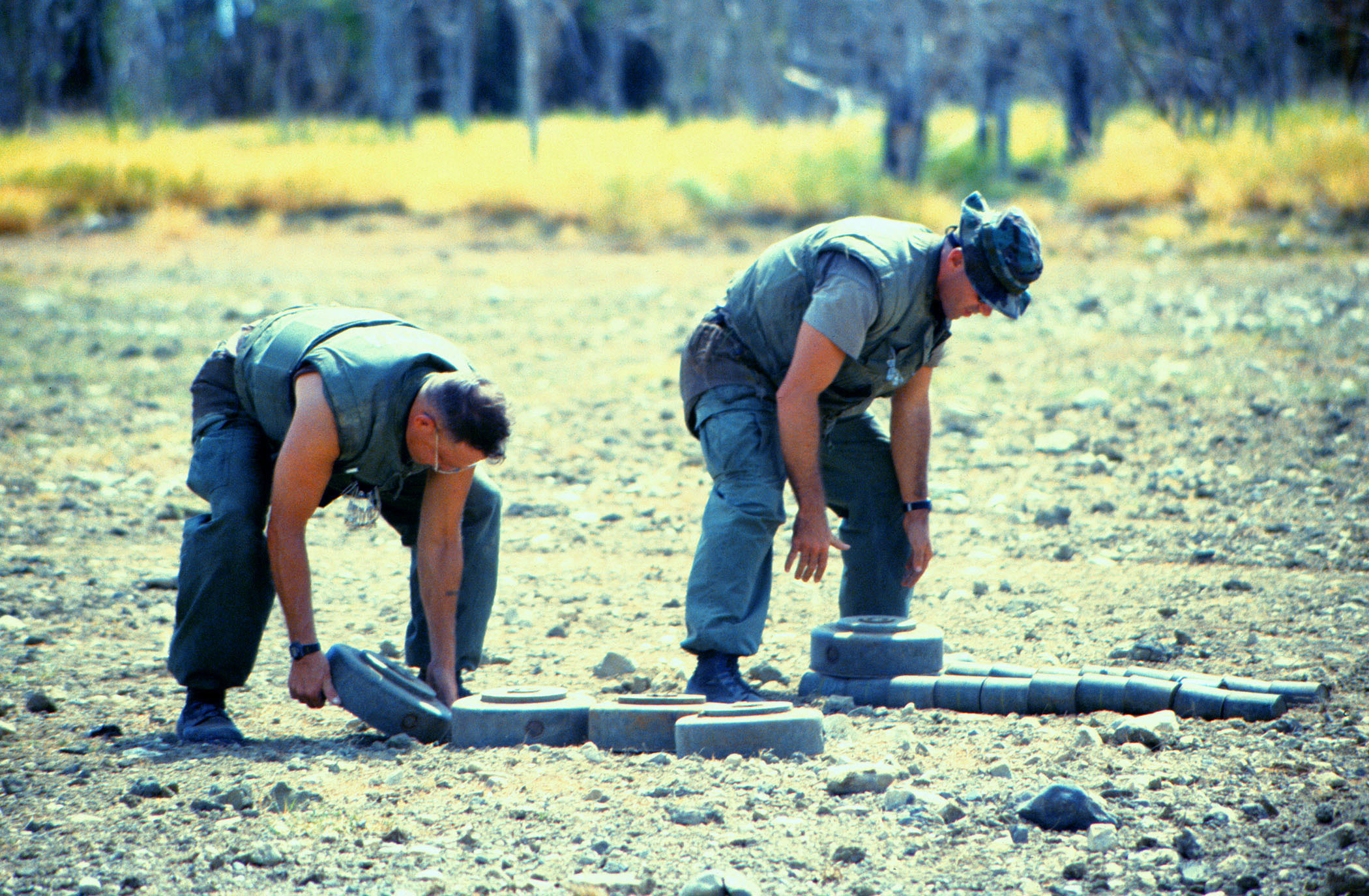 미국과 쿠바군은 해군 기지 주변 "무인지대"에 약 55,000개의 대인 지뢰 및 대전차 지뢰를 설치하여 세계에서 두 번째로 큰 지뢰밭을 만들었으며, 서반구에서는 가장 큰 규모였다.[36] 1996년 5월 16일, 빌 클린턴 미국 대통령은 미국 지뢰밭의 지뢰 제거를 명령했다. 이후 침입자를 탐지하기 위해 동작 감지기와 음향 센서로 교체되었다. 쿠바 정부는 주변 지역에 해당하는 지뢰밭을 제거하지 않았다.[32][33]