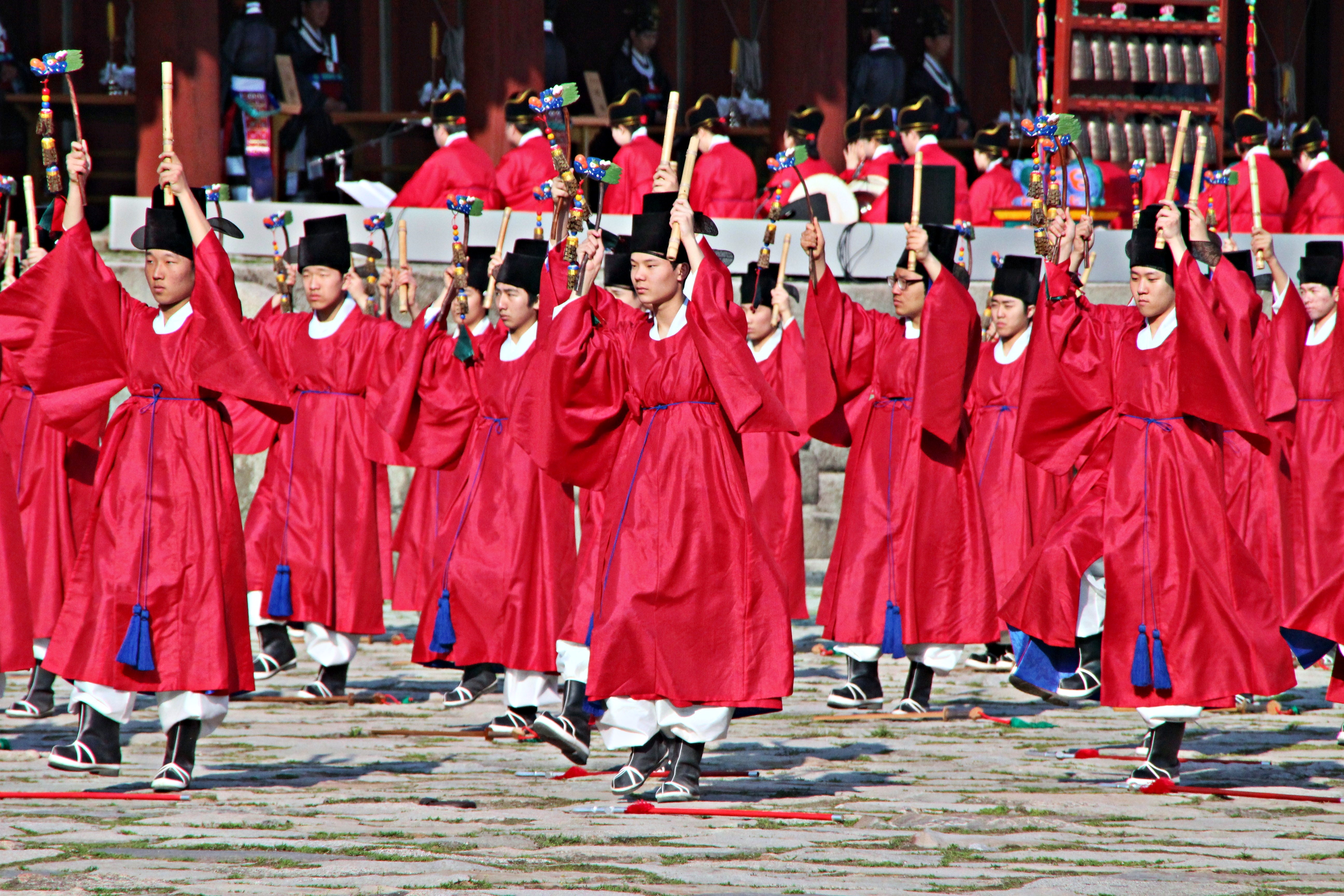 관례 의식을 치르기 위해, 15세에서 20세 사이의 남자는 상투를 틀고 관을 쓴다.