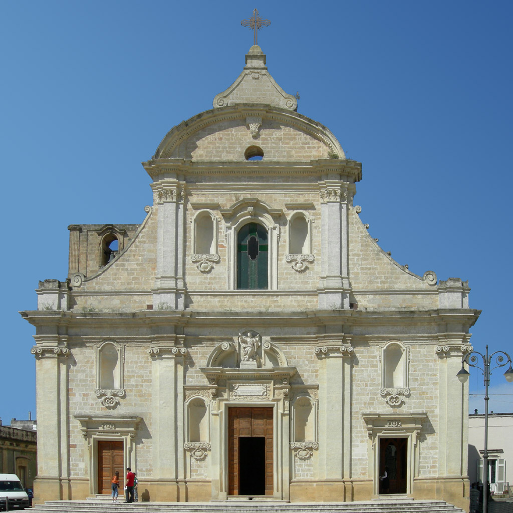 이 성당은 2개의 층으로 나뉜 웅장한 바로크 건축 양식의 정면을 가지고 있으며, 입구 위에는 성모 승천 조각상이 있고, 양쪽에는 정교한 장식으로 꾸며진 작은 문이 두 개 있다. 내부 구조는 3개의 복도를 가진 라틴 십자 형태이며, 화려한 금도금 석고로 장식되어 있다. 별 모양 천장이 있는 복도에는 십자가에 못 박힌 예수, 성 프란치스코 하비에르/San Francesco Saverioit, 성 오론초/Sant'Oronzoit, 카르미네의 성모, 성 코스마와 다미아노/Santi Cosma e Damianoit, 성 프란체스코 아시시/San Francesco d'Assisiit, 그리고 성 요셉과 같은 바로크 제단들이 있다. 오른쪽 익랑에는 14세기 성모상을 모신 묵주 기도의 성모 제단이 있다. 르네상스 양식의 세례당은 최근에 복원되었다.