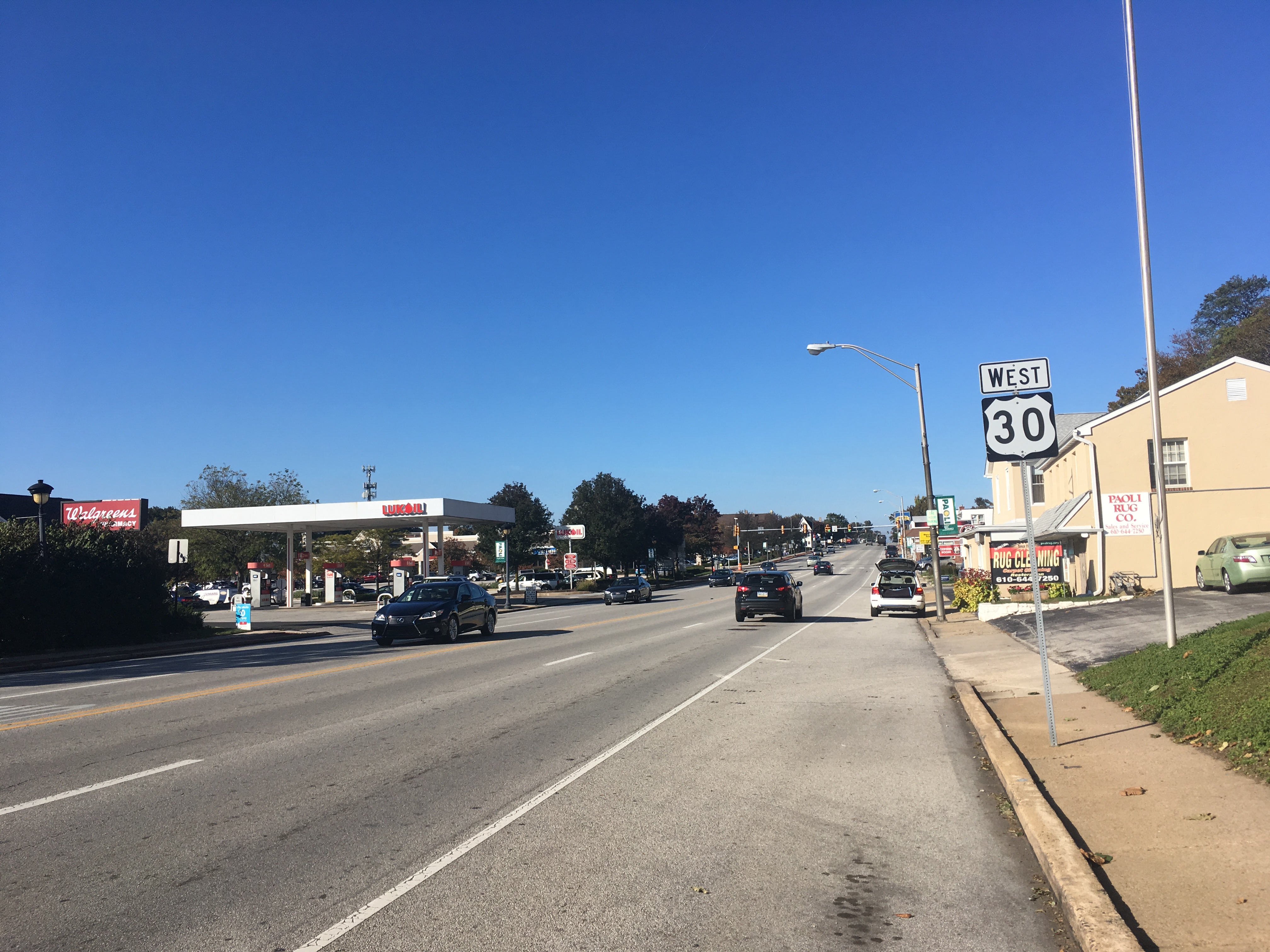 2018년 10월, 필라델피아 메인 라인을 따라 펜실베이니아주 파올리에서 서쪽으로 가는 30번 국도