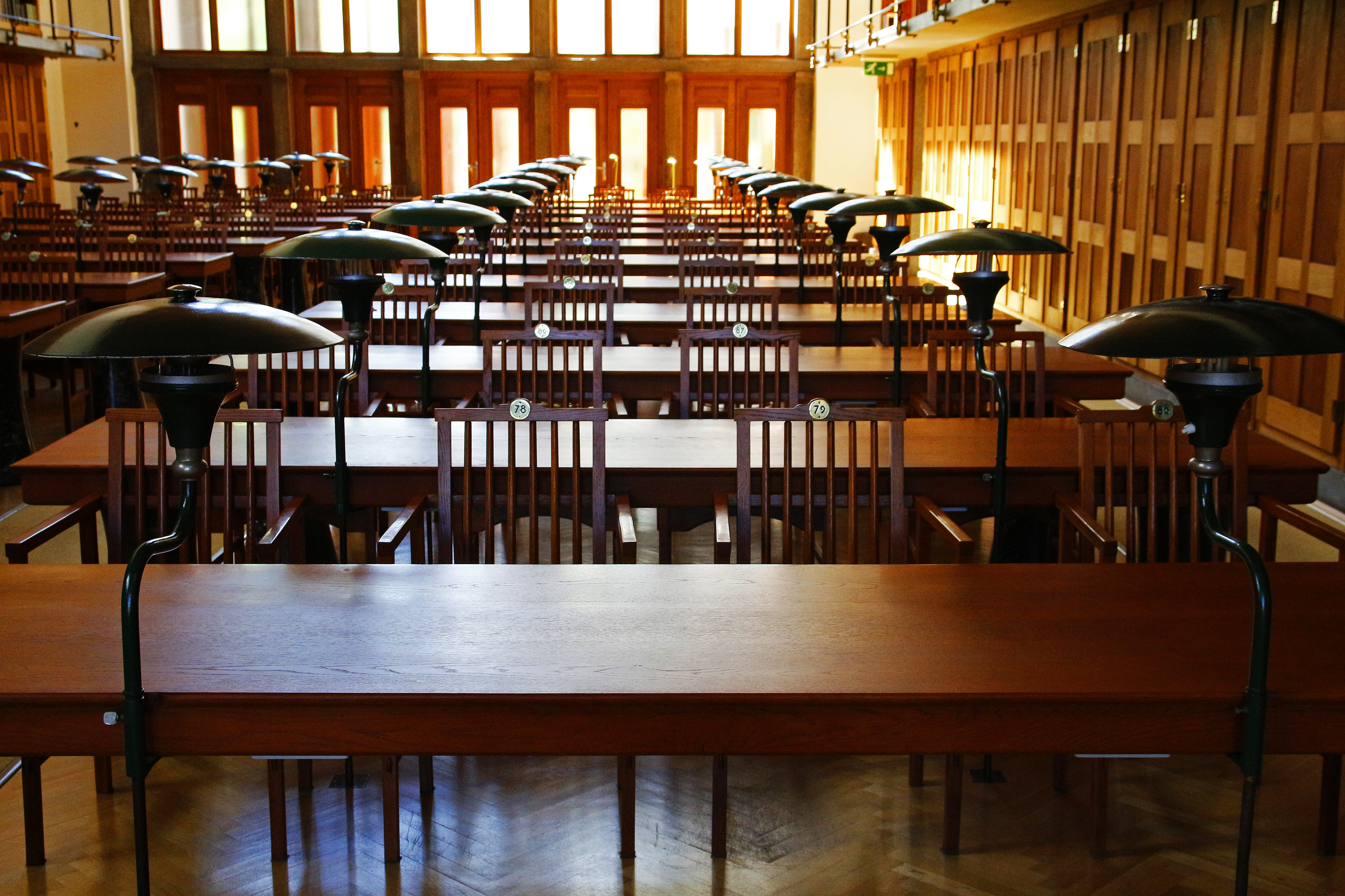 내부는 4개의 날개와 중앙 복도로 구성되어 있으며, "무지의 황혼에서 지식과 계몽의 빛으로"라는 건축 사상을 담고 있다. 주 계단은 포드페치 대리석(석회암) 32개 기둥으로 받쳐져 있고, 네 모퉁이에는 발코니형 난간이 있는 작은 계단이 있다. 19세기 산업 미학을 본뜬 열람실에는 큰 샹들리에가 있으며, 양옆 유리 벽은 기둥으로 나뉘어 건물 측벽 일부를 이룬다.