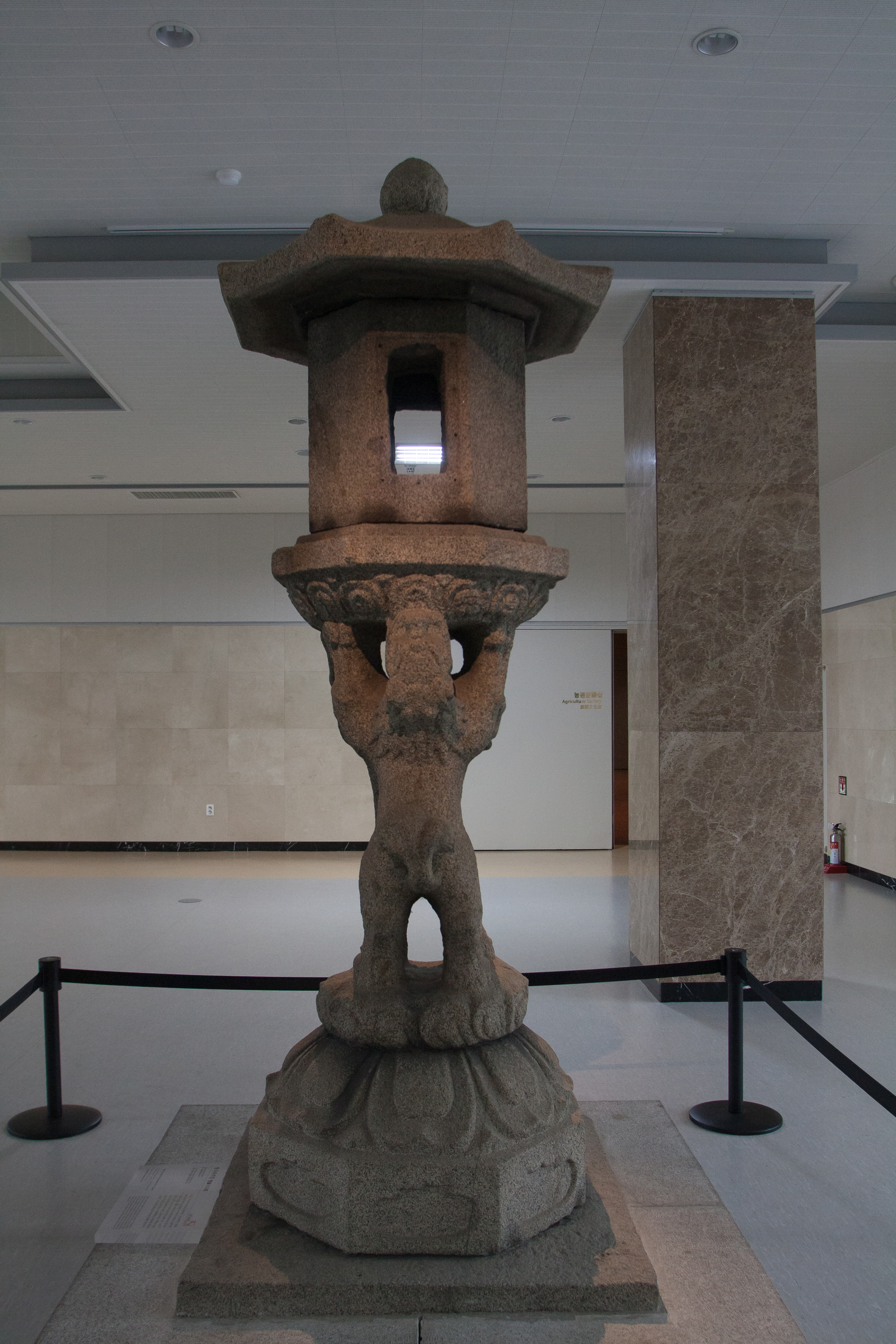 중앙홀에는 통일신라시대 석조물의 우수성을 보여주던 국보 제103호, 광양 중흥산성 쌍사자 석등이 전시되어 있다.