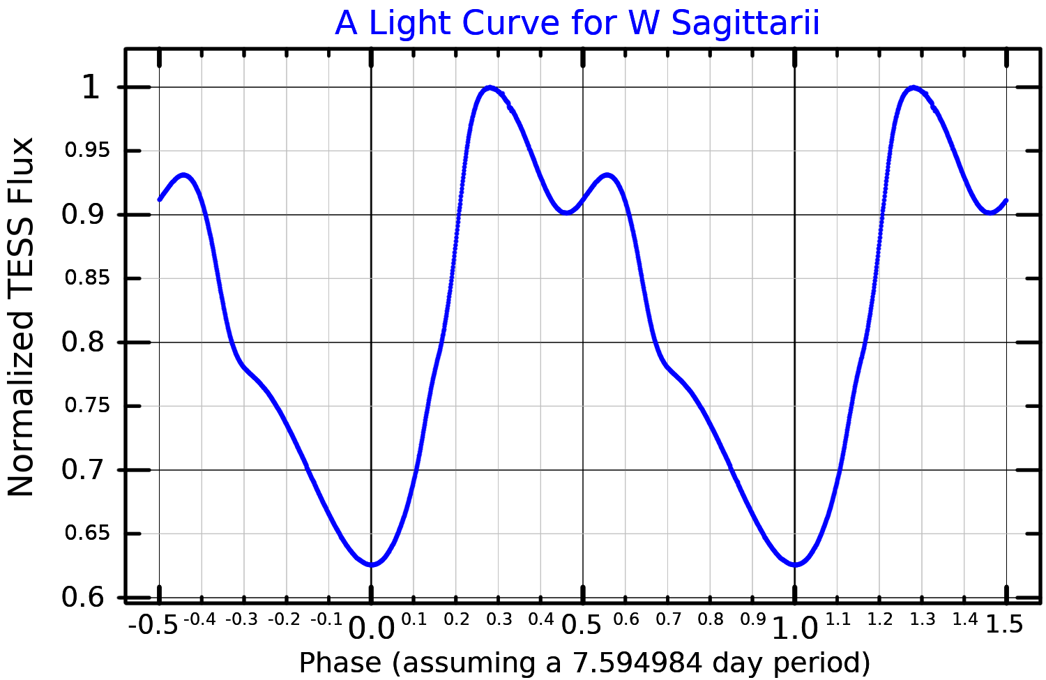 계에서 가장 밝은 구성원 궁수자리 W Aa1은 변광성으로 7.59일마다 밝기가 4.3 ~ 5.1 등급 사이에서 진폭을 보인다. 맥동을 일으키는 동안 Aa1의 표면온도와 분광형도 변화한다. Aa1은 고전 세페이드 변광성으로 분류된다.[35]초거성 성분 W 궁수자리 Aa1은 7.59일마다 4.3등급에서 5.1등급 사이에서 규칙적으로 진동하는 변광성이다. 맥동 동안 온도와 분광형도 변화한다. 이 별은 고전 세페이드(δ 세페이) 변광성으로 분류된다.[3]