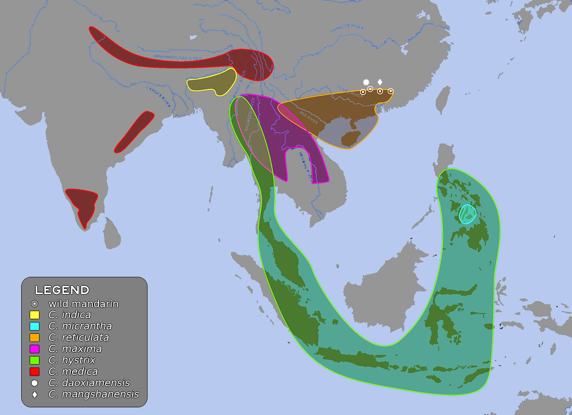 후기 마이오세(1,163만 년 전 ~ 533만 년 전) 동안의 기후 변화는 귤속 식물의 종 분화를 촉진했다.[7][8] 이로 인해 남아시아의 시트론(''Citrus medica''), 동남아시아 본토의 포멜로(''C. maxima''), 중국 남동부의 귤(''C. reticulata''), 금귤(''C. japonica''), 망산이간(''C. mangshanensis'') 및 이창 파페다(''C. cavaleriei''), 동남아시아 섬의 카피르 라임(''C. hystrix''), 필리핀의 바이어송과 사무야오(''C. micrantha'')가 생겨났다.[7][8]