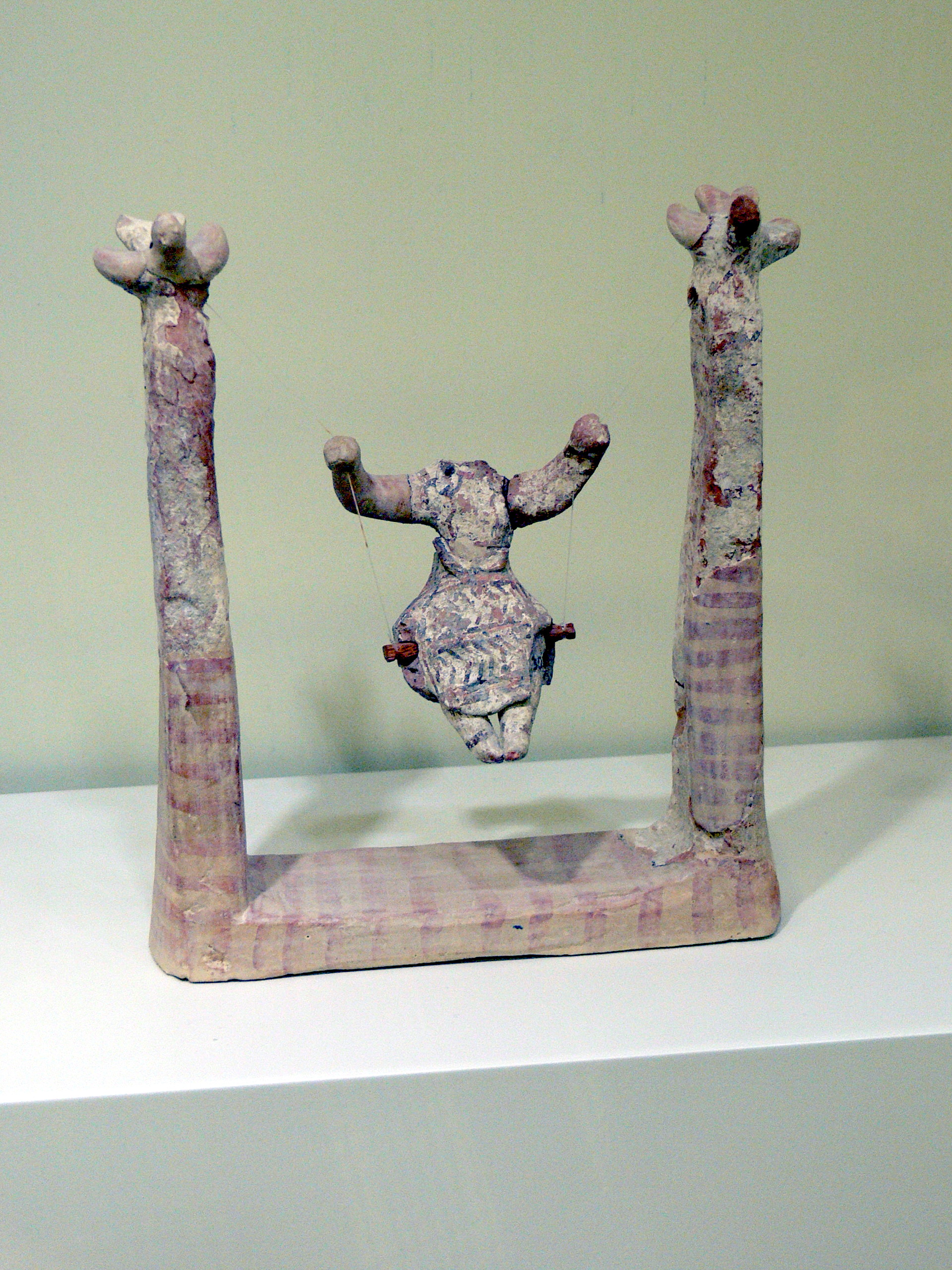 그리스에서 발견된 유물에서 그네에 대한 초기 기록을 찾아볼 수 있다. 하기아 트리아다에서 발견된 그네에 앉아 있는 여성의 테라코타 조각상은 후기 신 궁전 시대(기원전 1450–1300년)로 거슬러 올라간다.[6]