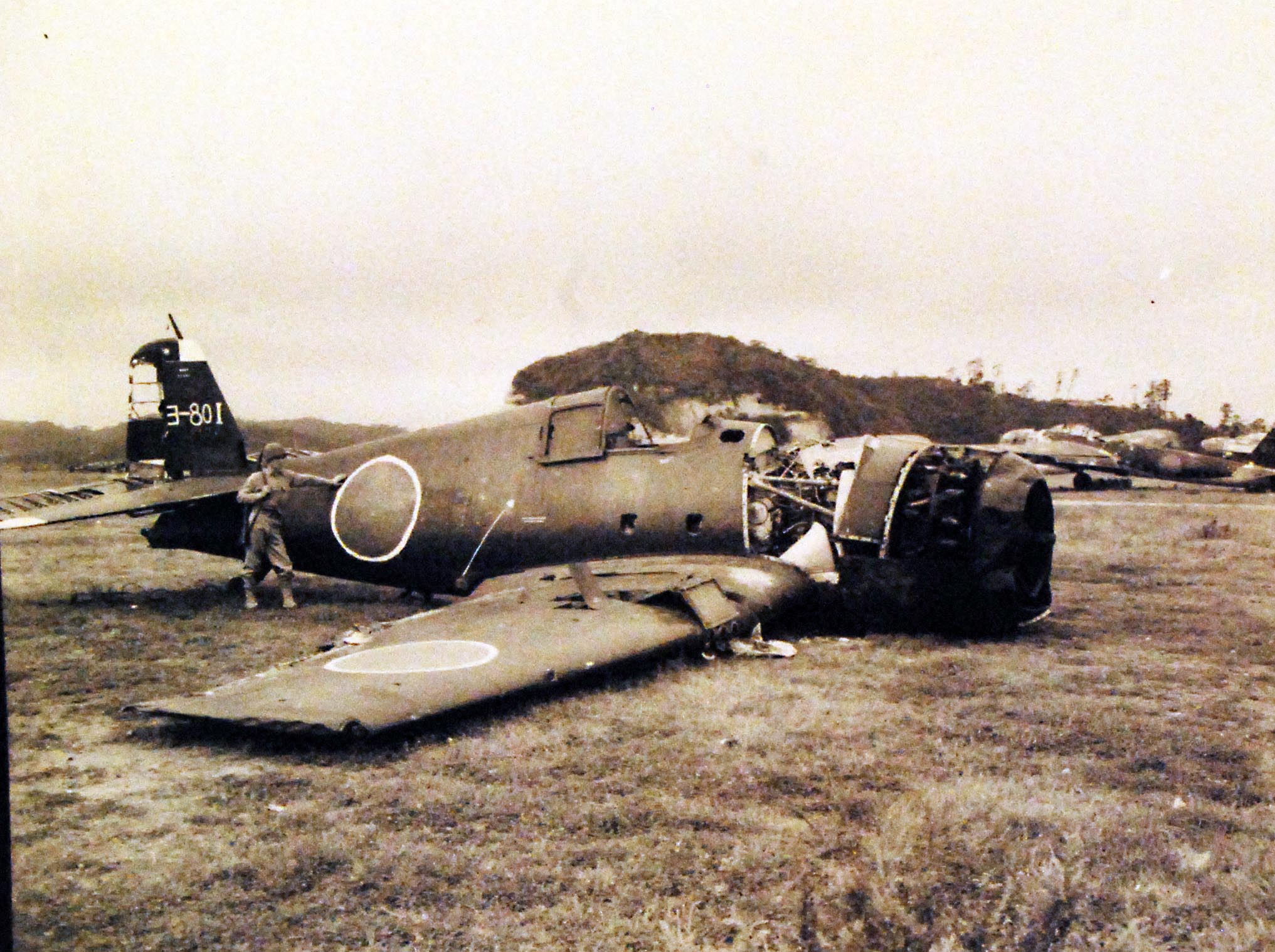 1945년 1월 4일 오전, 대만 중서부 비행장에 대한 폭격 및 사진 정찰 임무를 띠고 항공모함 랭글리 제44 전투 비행대 소속 맬컴 T. 워델 중령(Malcome T. Wordell) 지휘 하 F6F-5 편대 "스트라이크 B대"의 찰스 발렌타인 어거스트 중위(Charles Valentine August)가 조종하던 F6F-5 / 71441호기가 엔진 불량으로 후오 해군 비행장 근처 밭에 동체 착륙했다. 이 기체는 정비대에 의해 양호한 상태로 회수되어 호오 신사 경내 숲으로 옮겨져 일반에 공개되었다. 이후 행방은 불명이지만, 요코스카에서 운용된 기체로 추정된다.[121] 어거스트 중위는 7개월 후 종전을 맞아 수용소를 나와 본국으로 귀환했다.[122]