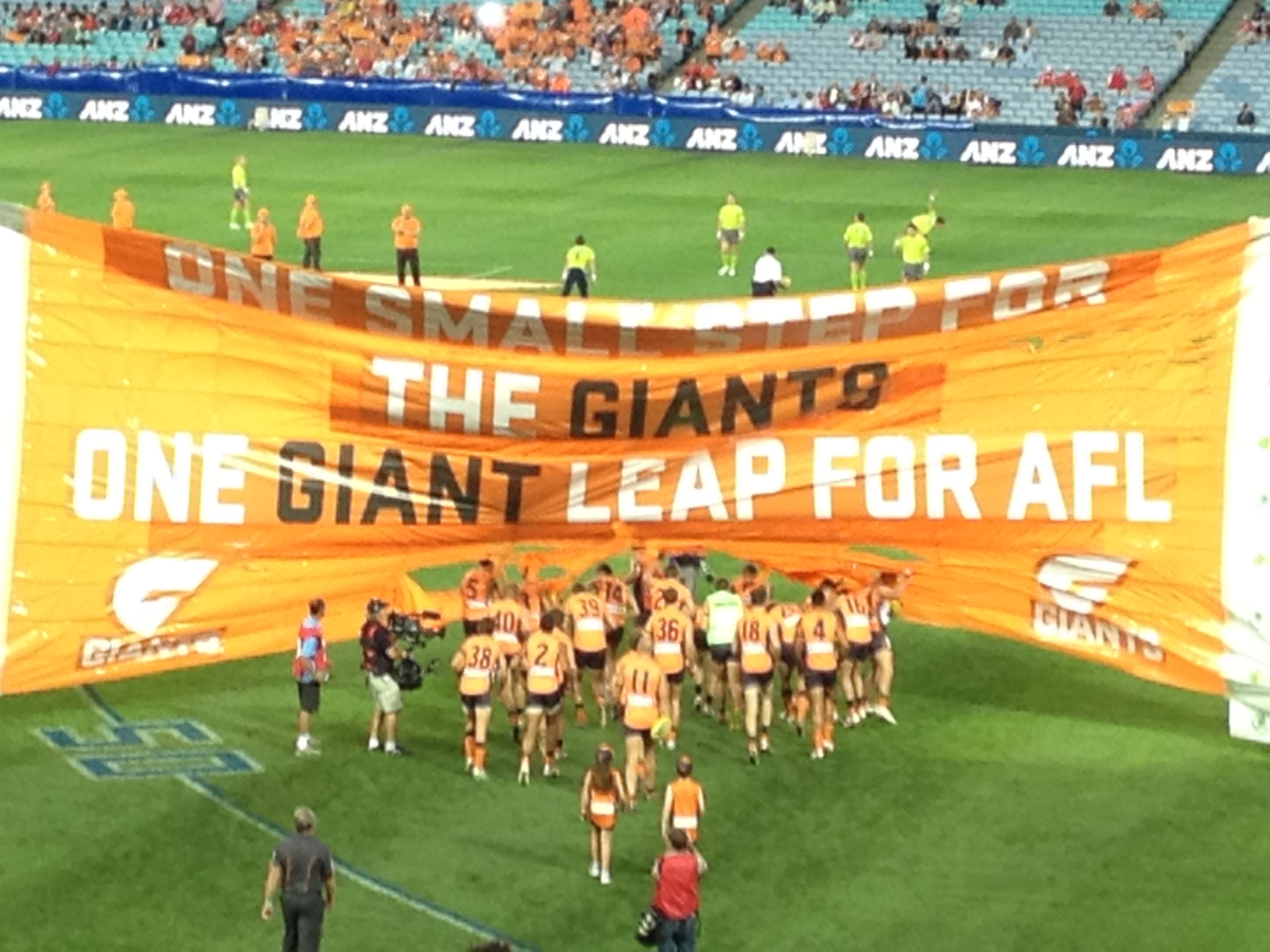 GWS는 2012년 시드니 스완스와의 창단 시드니 더비에서 첫 경기를 치렀으나 패배했다.[47] 이후 골드코스트 선스와 포트 애들레이드를 상대로 승리하며 첫 시즌을 마쳤다.[47] 2013년에는 시즌 유일의 승리를 멜버른을 상대로 거두었다.[49]