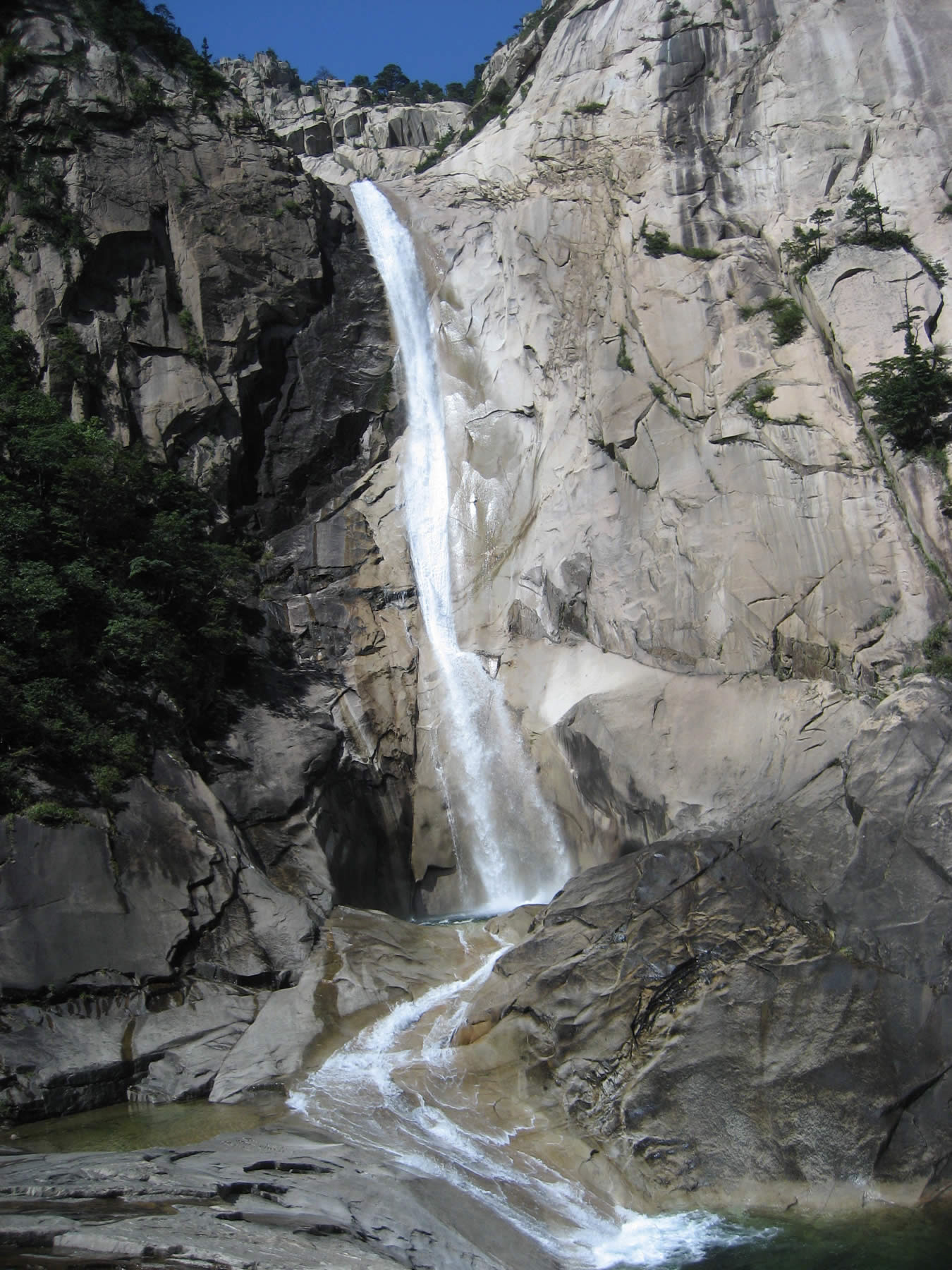 - 구룡연(九龍淵)에 있는 구룡폭포는 개성의 박연폭포, 설악산에 있는 대승폭포와 더불어 조선 3대 폭포로 꼽힌다.[40] 높이는 74m, 너비 4m에 달한다.[56] 폭포 절벽과 바닥이 한 화강암 덩어리이다.[56] 비봉폭포는 이것보다 더 높은 139m에 달하며, 장쾌한 물줄기로 이름나 있다.[56]