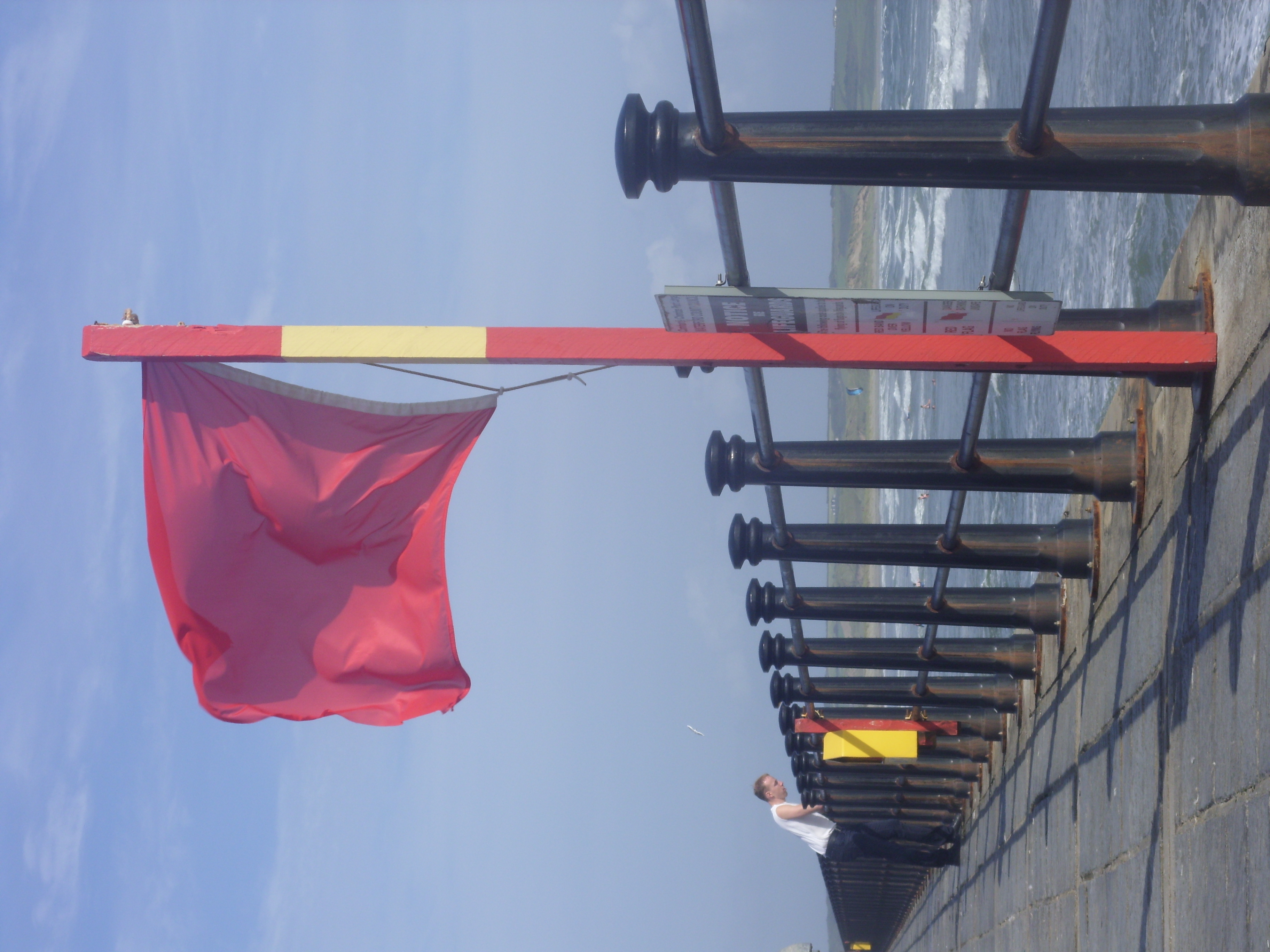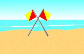 호주, 캐나다, 뉴질랜드, 필리핀, 아일랜드, 영국에서는 빨간색과 노란색 깃발 한 쌍을 사용하여 해변의 수영 구역 경계를 표시하며, 일반적으로 인명 구조원이 지킨다. 해변이 폐쇄되면 깃발의 기둥을 교차시킨다. 깃발은 빨간색 삼각형과 노란색 삼각형으로 직사각형 깃발을 만들거나, 노란색 직사각형 위에 빨간색 직사각형으로 칠해진다. 많은 호주 해변에서는 해변 상태 신호에 약간의 변형이 있는데, 빨간색 깃발은 해변 폐쇄(영국에서는 다른 위험도 포함)를 의미하고, 노란색은 강한 조류 또는 어려운 수영 조건을 의미하며, 녹색은 일반 수영에 안전한 해변을 나타낸다. 아일랜드에서는 빨간색과 노란색 깃발은 수영이 안전함을 나타내고, 빨간색 깃발은 안전하지 않음을 나타내며, 깃발이 없으면 인명 구조원이 근무하지 않음을 나타낸다. 파란색 깃발은 노란색-빨간색 인명 구조 구역에서 멀리 떨어져 서핑 및 기타 소형 무동력 수상 활동 구역을 지정하는 데에도 사용될 수 있다.