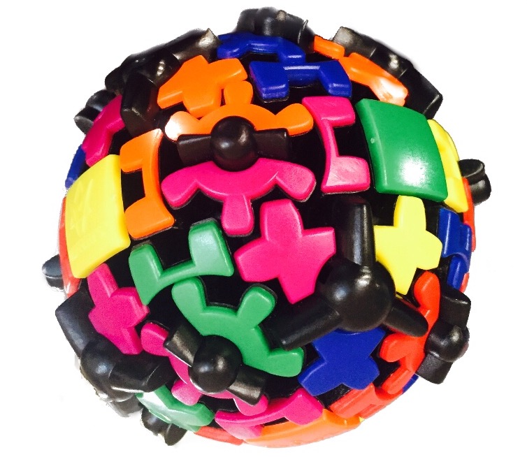 '''기어 볼''': 이 큐브는 두 세트의 가장자리를 가지고 있다. 바깥쪽 가장자리는 6개의 이빨이 있는 기어 모양이고, 검은색 장벽이 있다. 안쪽 가장자리는 더 작고 원형이 아니며, 2개의 이빨만 있다. 또한, 코너에는 세 갈래 장벽이 있다. 이 큐브는 피라밍크스의 발명가인 메페르트에 의해 제조되었다.[15]